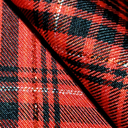 RED CLASSIC PLAID FAUX SILK DUPIONI