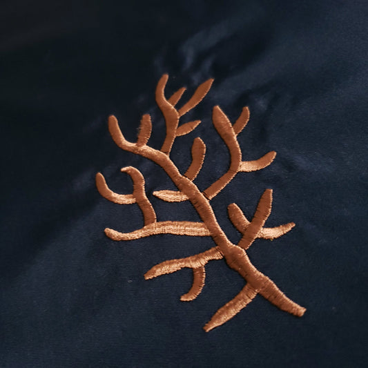 EMBROIDERED CORAL TAFFETA DRAPERY