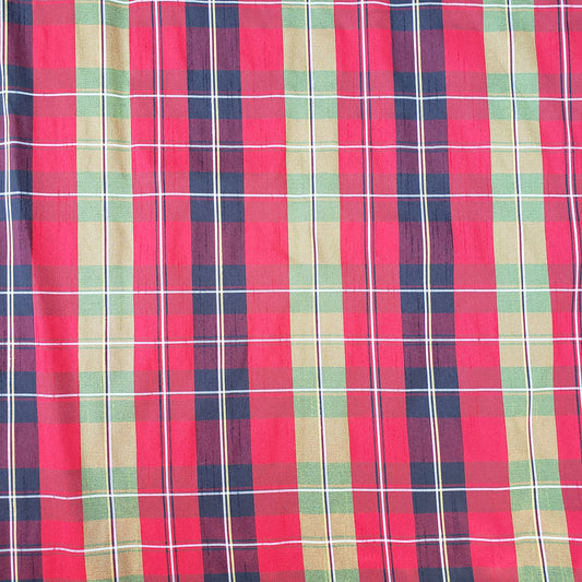 RED CLASSIC PLAID FAUX SILK DUPIONI