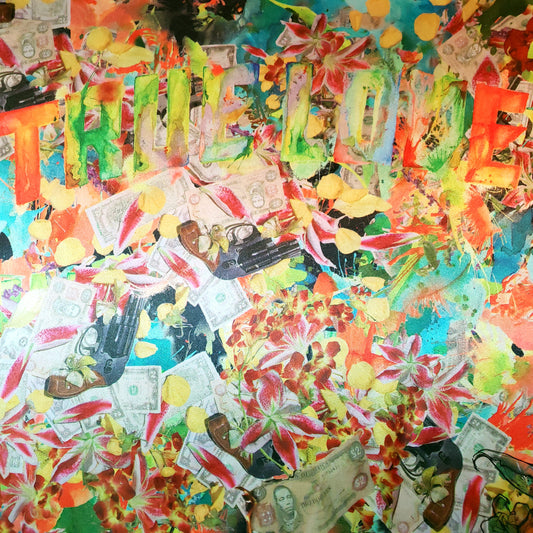 SILK SATIN LOVE GUNS AND FLOWERS COLLAGE