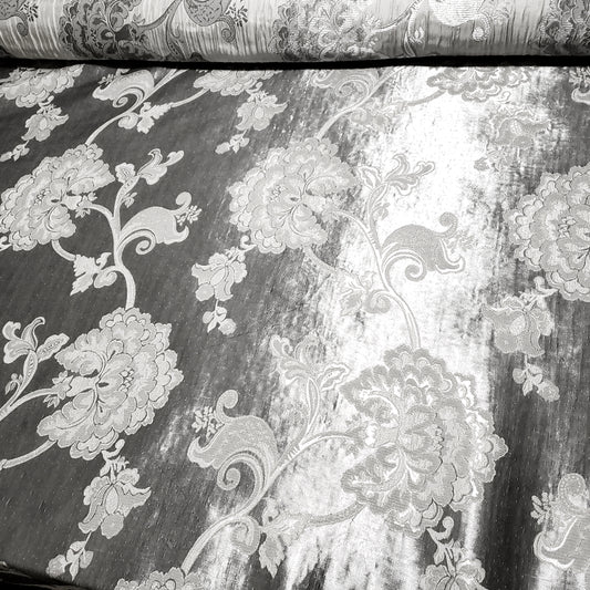 FLORAL TAUPE SILVER CHINTZ FLOWERS