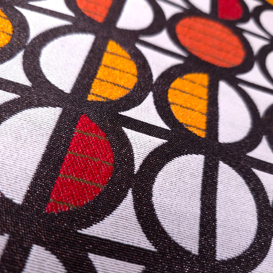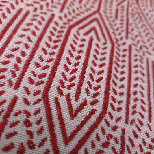 Red & Beige Geometric Embroidered Upholstery Fabric