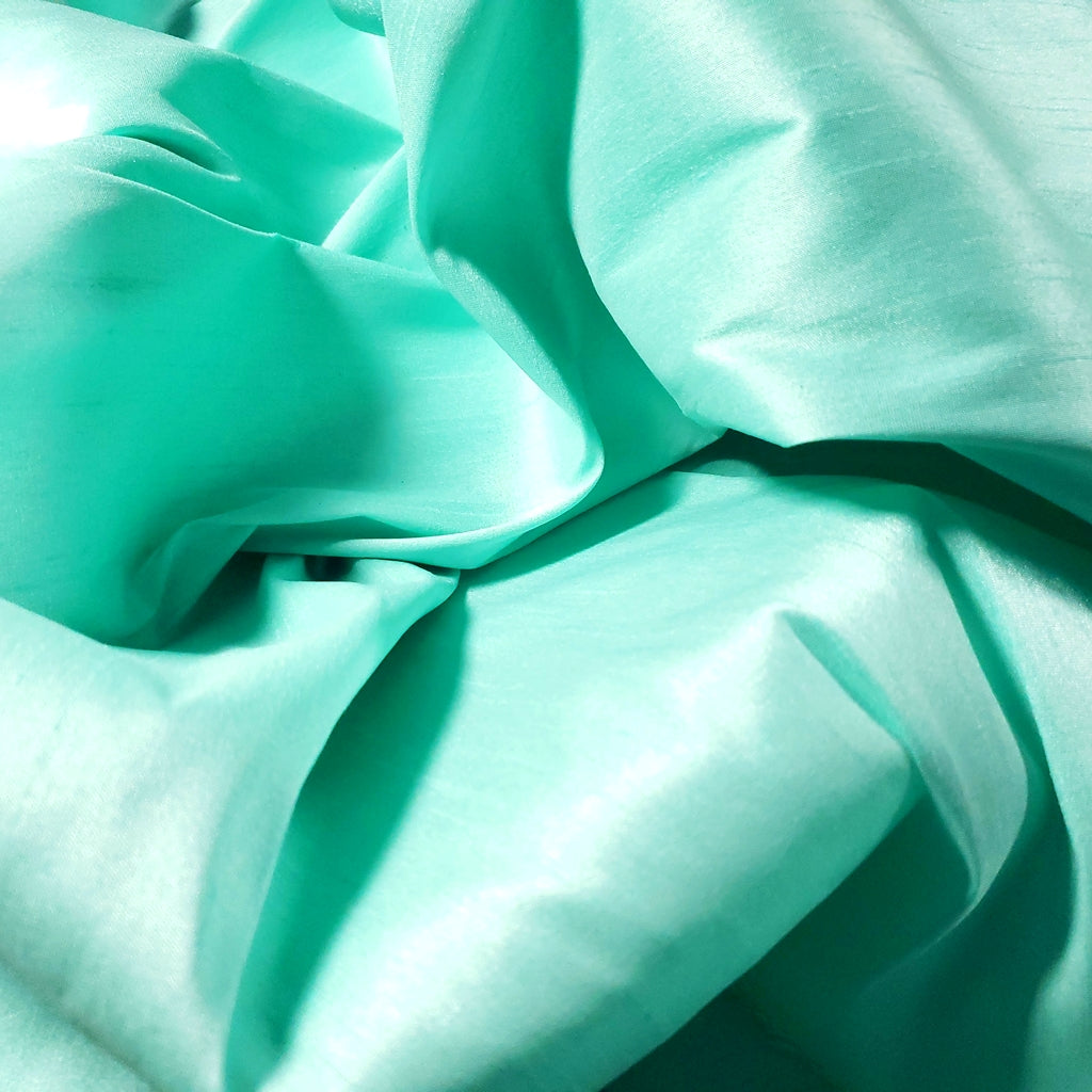 GREEN AQUA SEAFOAM FAUX SILK DUPIONI