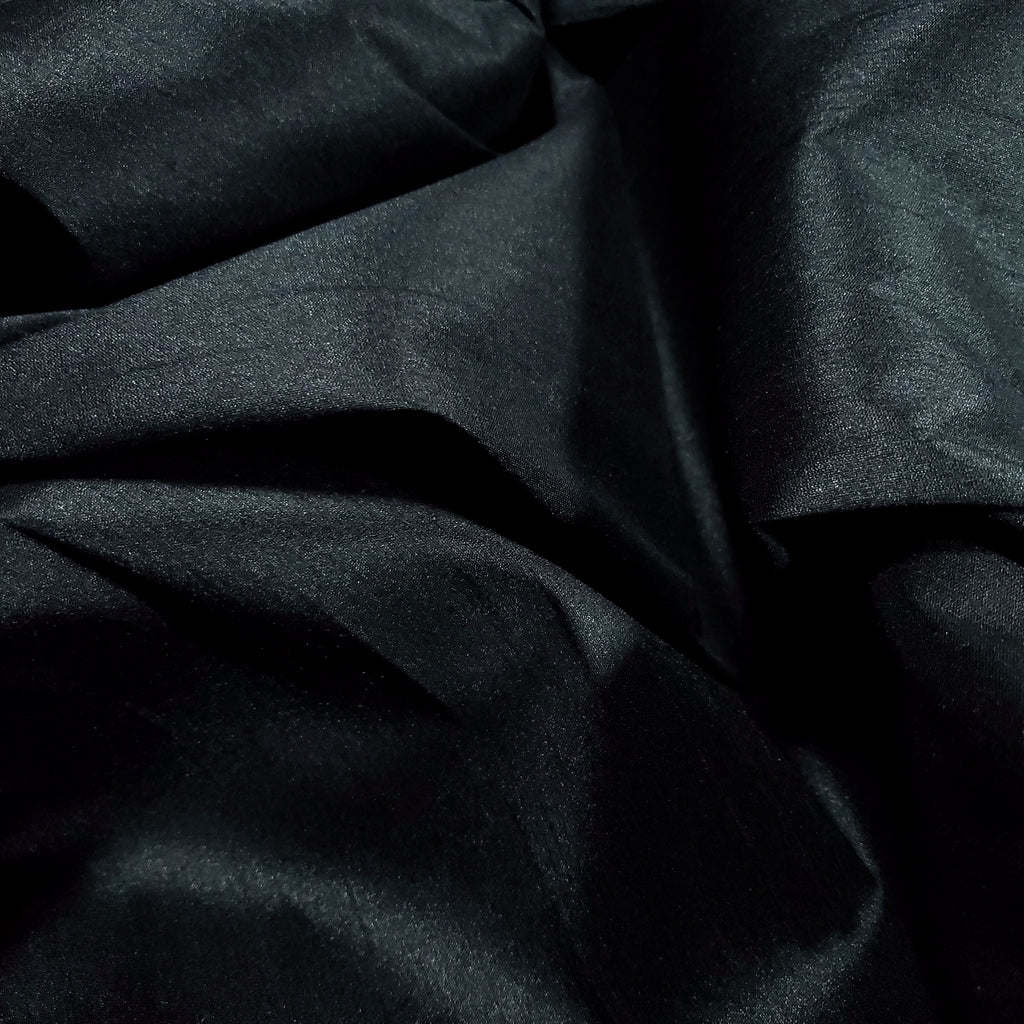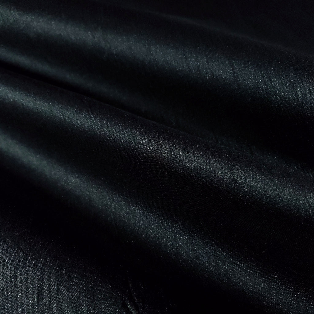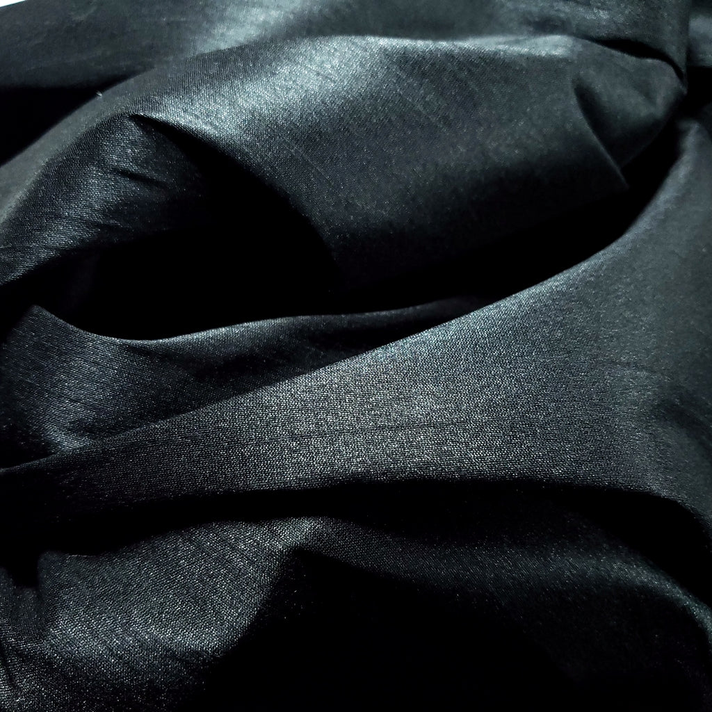 Dupioni fabric is a plain-woven fabric. Using a fine yard on the warp and an uneven yarn on the weft. This creates visual and textural raised thin stripes in the fabric. The thread used here has a subtle sheen to it. giving it a subtle color refracting iridescence.