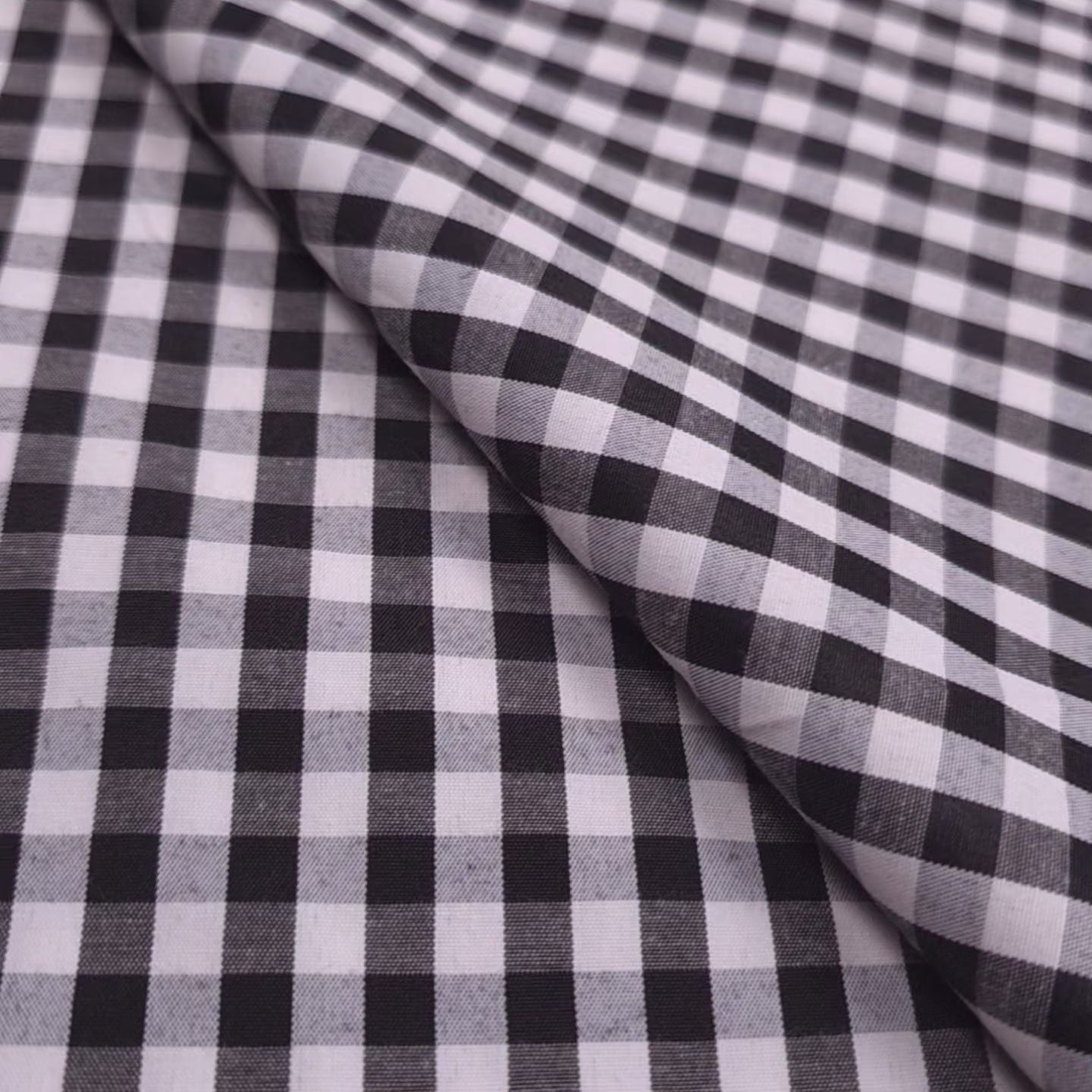 This fabric features a timeless 1/4 inch black and white gingham pattern. Crafted from a durable 80/20 poly-cotton blend, this material offers the benefits of both fibers: the crispness and wrinkle-resistance of polyester with the soft, breathable touch of cotton. Its versatile light-to-medium weight and smooth finish are perfectly suited for a wide range of projects, from classic apparel and school uniforms to modern farmhouse decor and picnic accessories. This no-stretch fabric is 58 inches wide and is sold by the yard for all your creative needs.