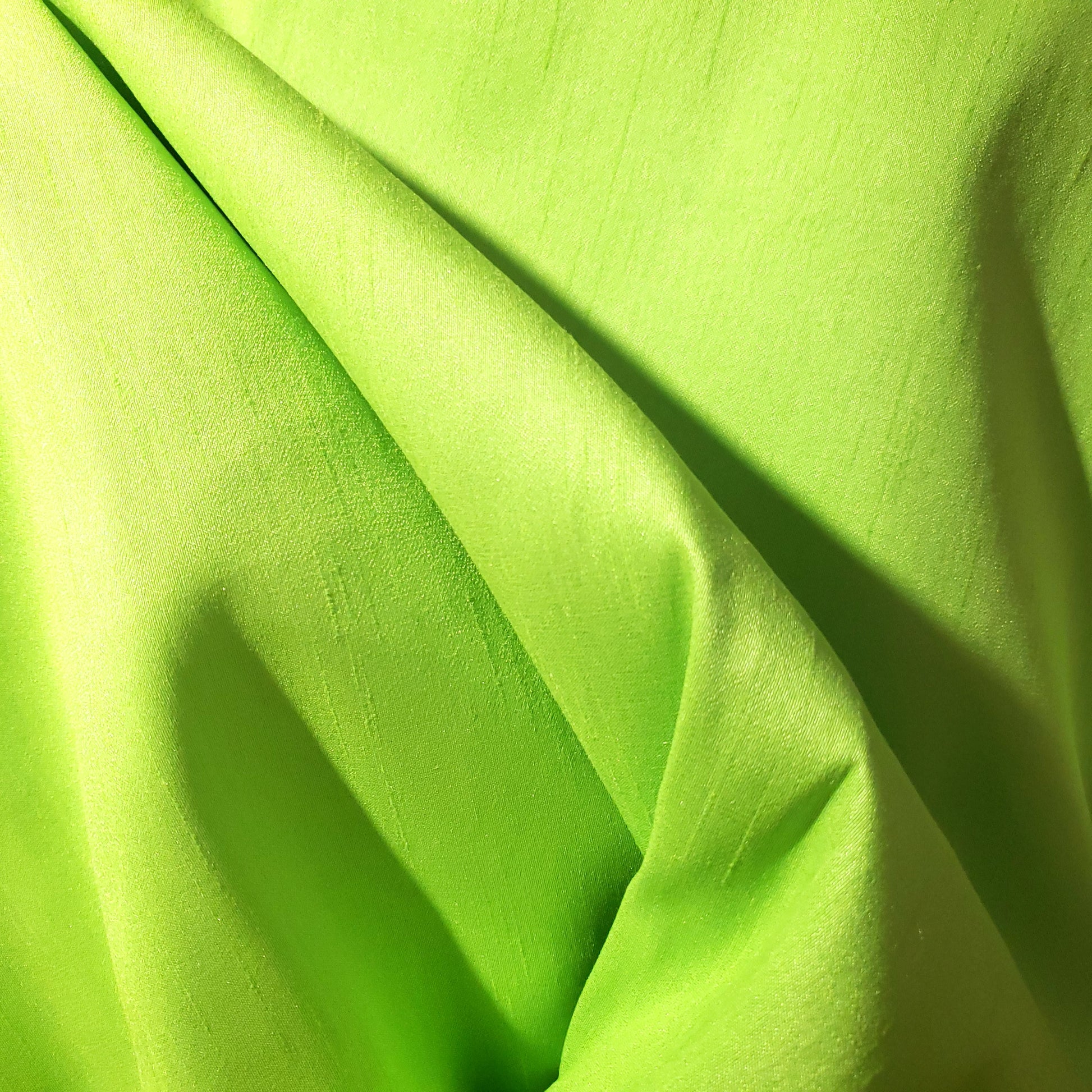 GREEN LIME SOFT FAUX SILK DUPIONI FABRIC