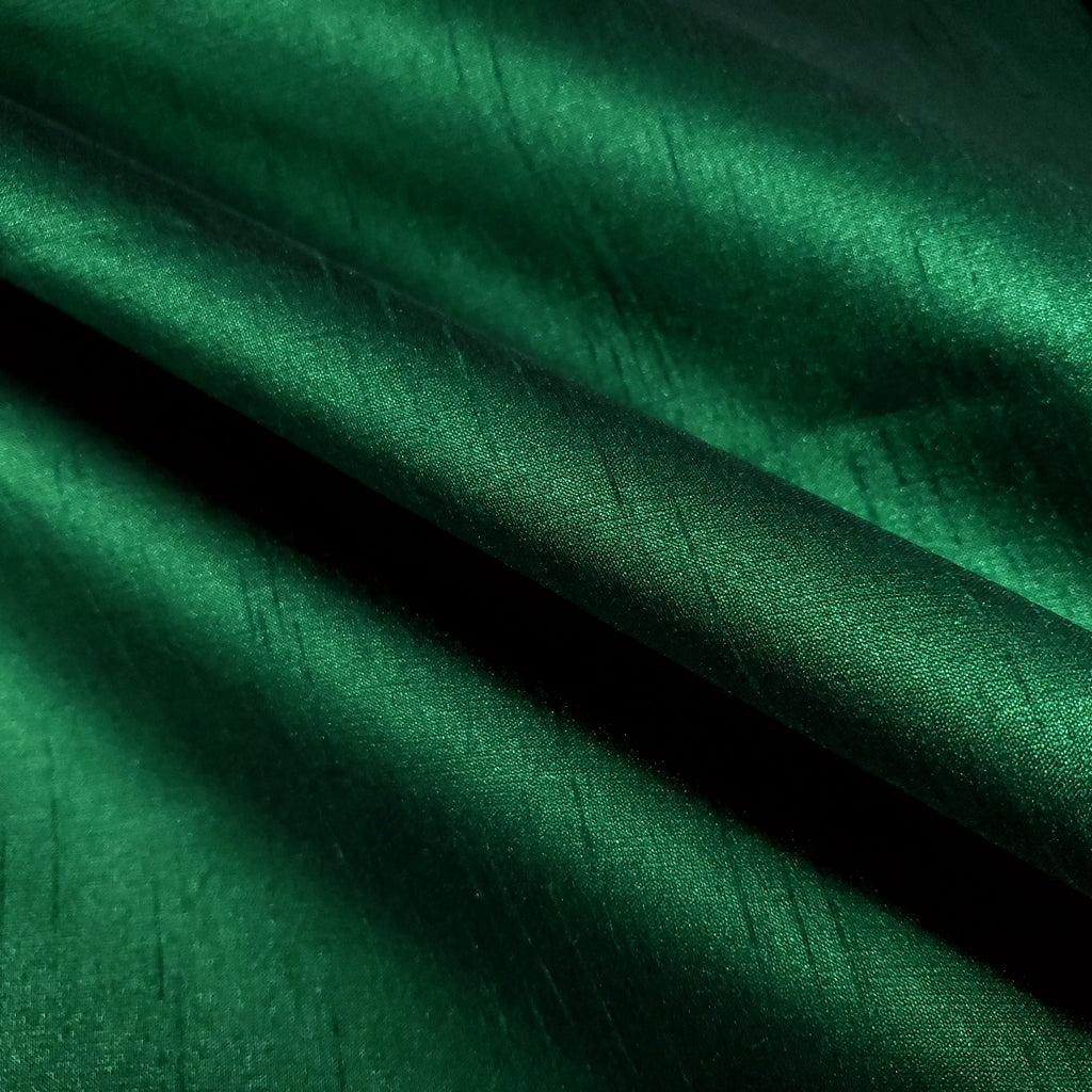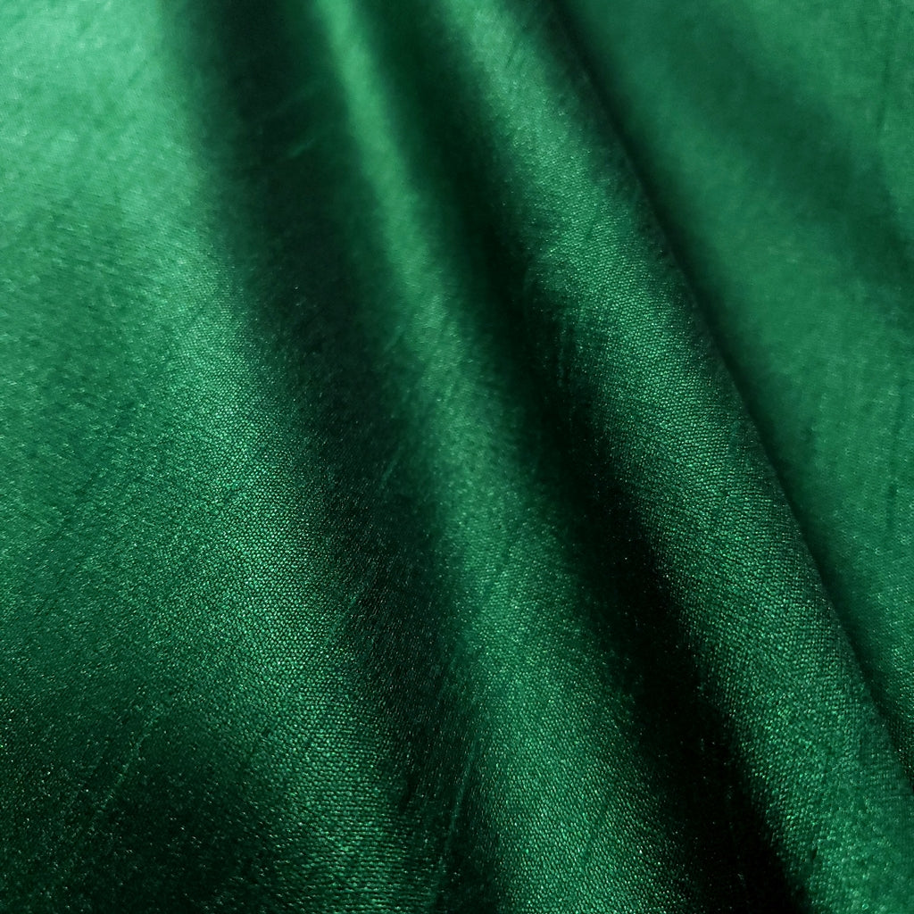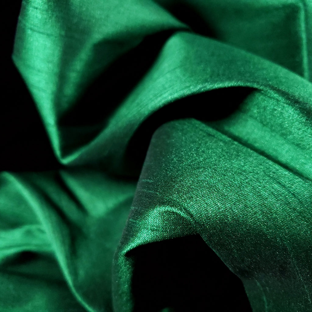 Dupioni fabric is a plain-woven fabric. Using a fine yard on the warp and an uneven yarn on the weft. This creates visual and textural raised thin stripes in the fabric. The thread used here has a subtle sheen to it. giving it a subtle color refracting iridescence.