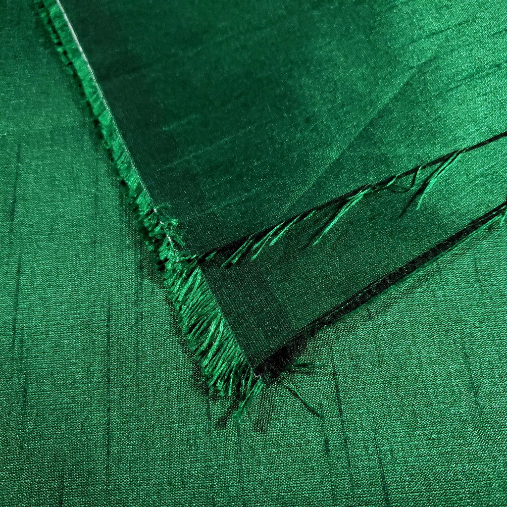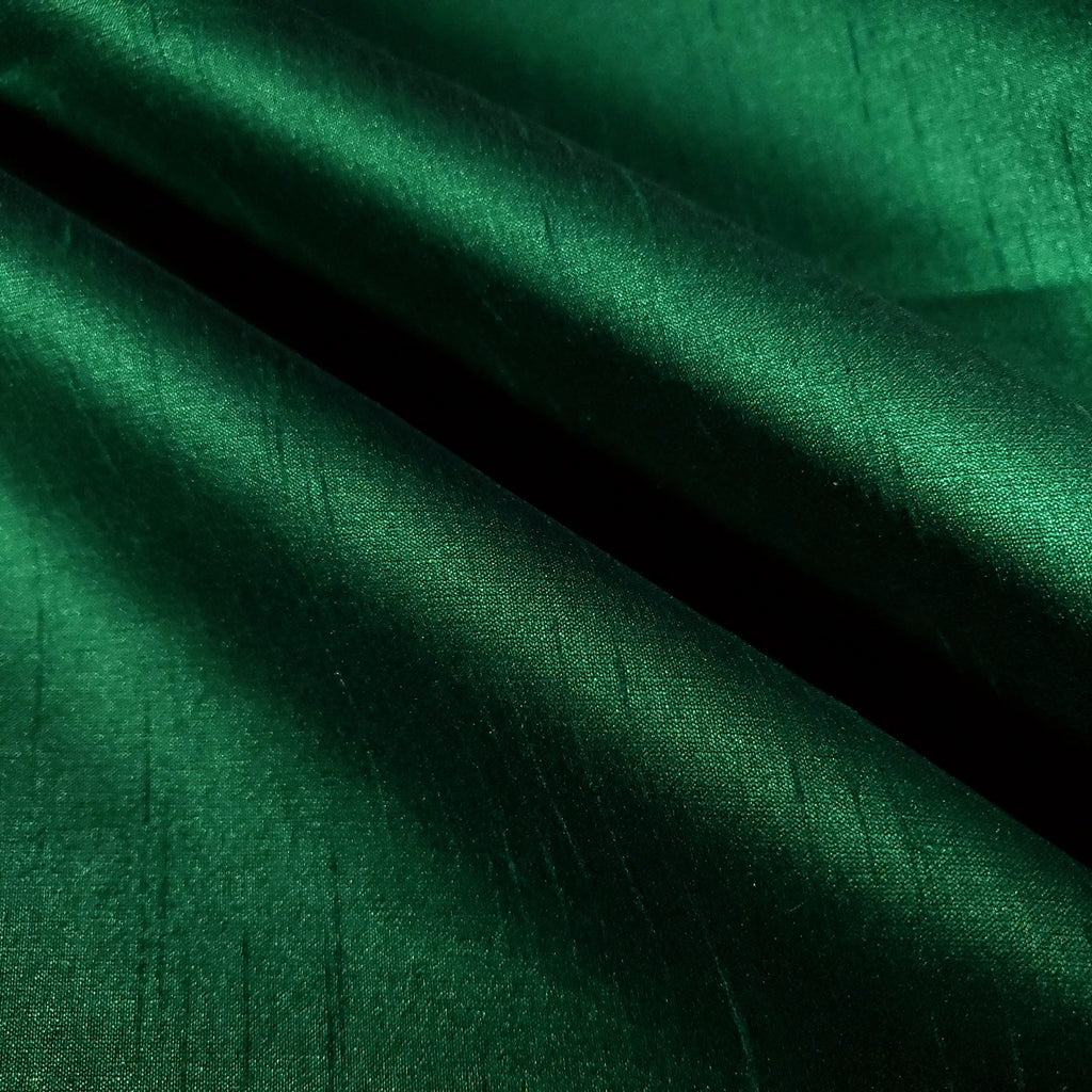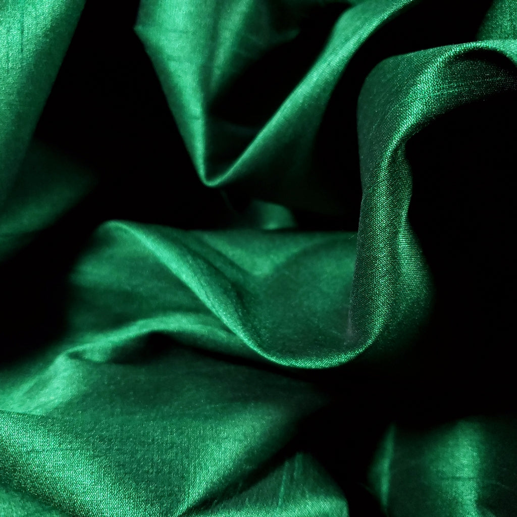 Dupioni fabric is a plain-woven fabric. Using a fine yard on the warp and an uneven yarn on the weft. This creates visual and textural raised thin stripes in the fabric. The thread used here has a subtle sheen to it. giving it a subtle color refracting iridescence.