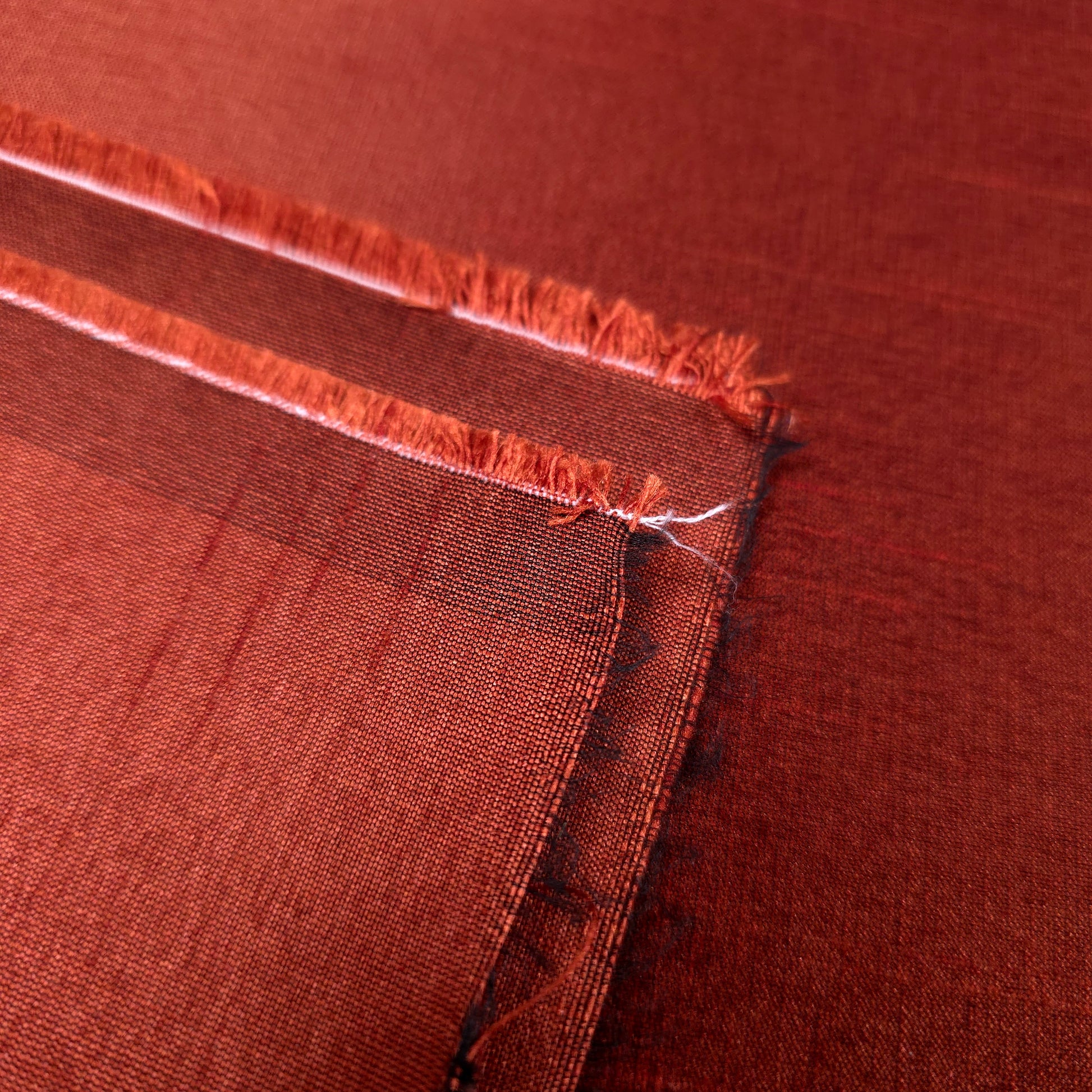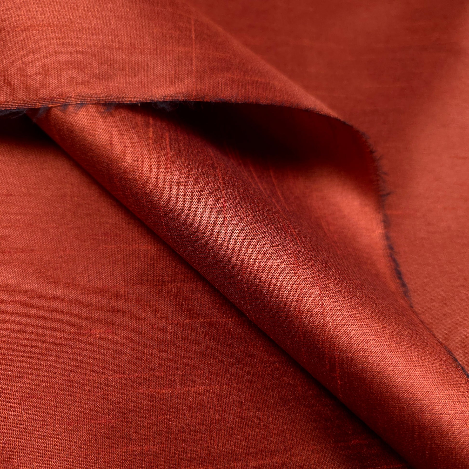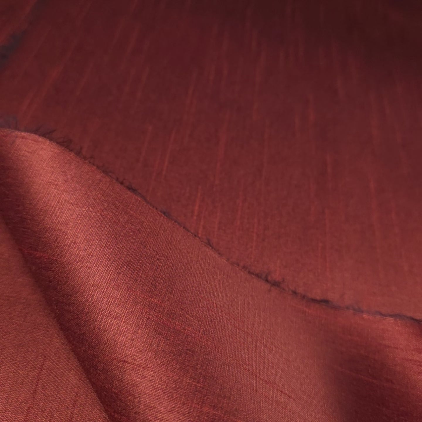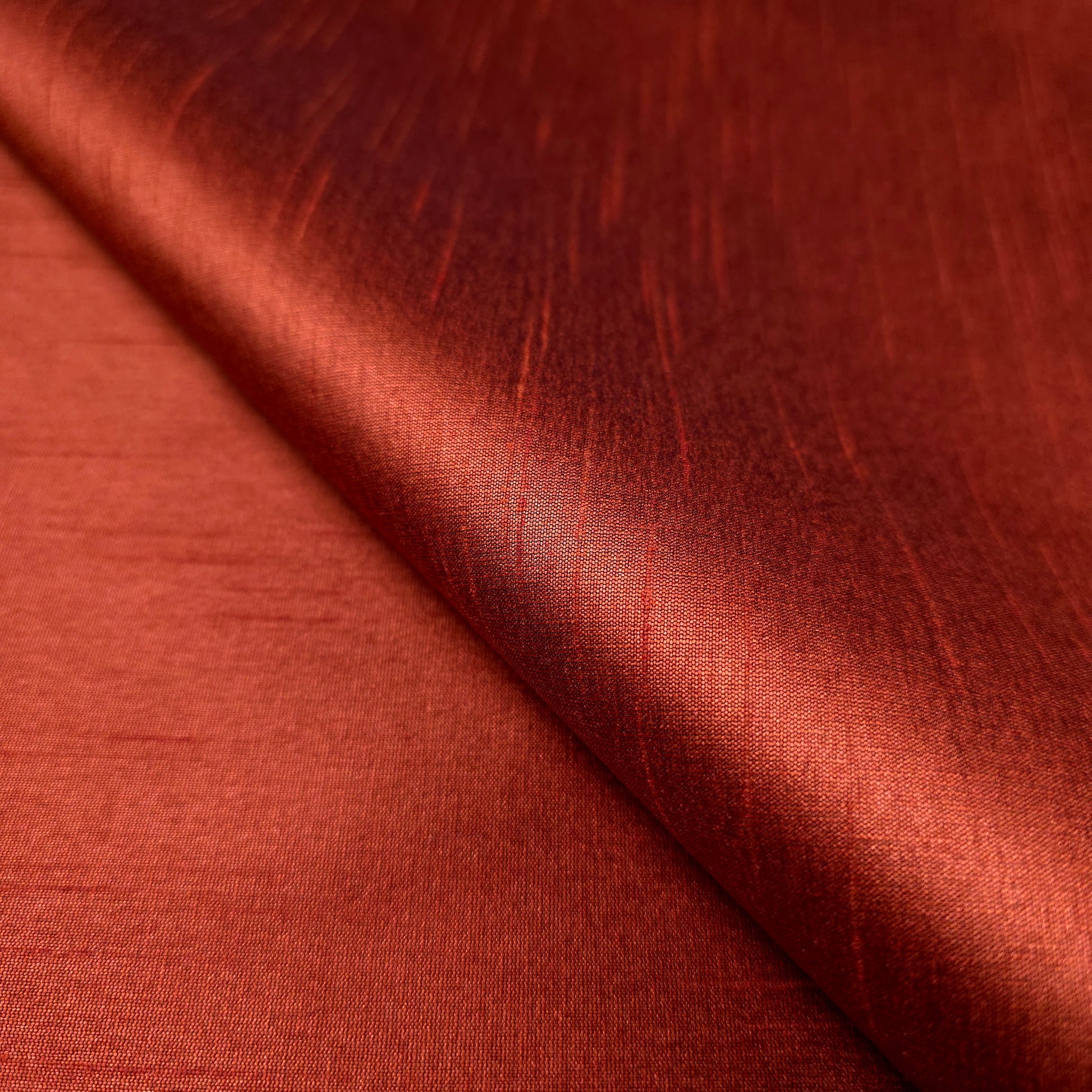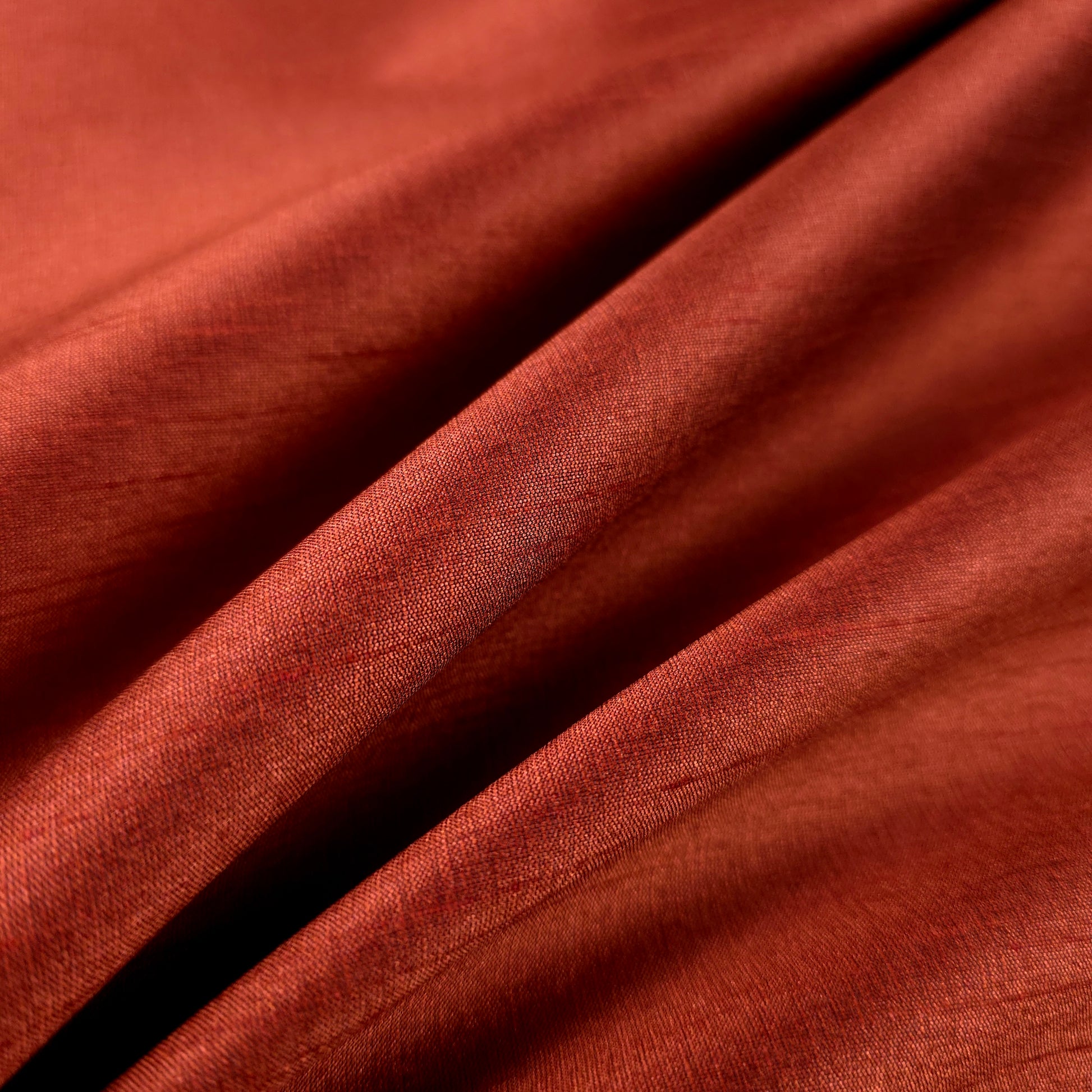 This Expertly crafted polyester dupioni fabric emulates silk's luxurious appearance at a fraction of the cost. The dominant brick brown interwoven with thin black threads creates dimensional depth and subtle iridescence. This plain-woven textile features characteristic raised stripes from the combination of fine warp and uneven weft yarns. Versatile enough for fashion design, drapery, light upholstery, corsetry, millinery, and decorative applications where elegance is essential.