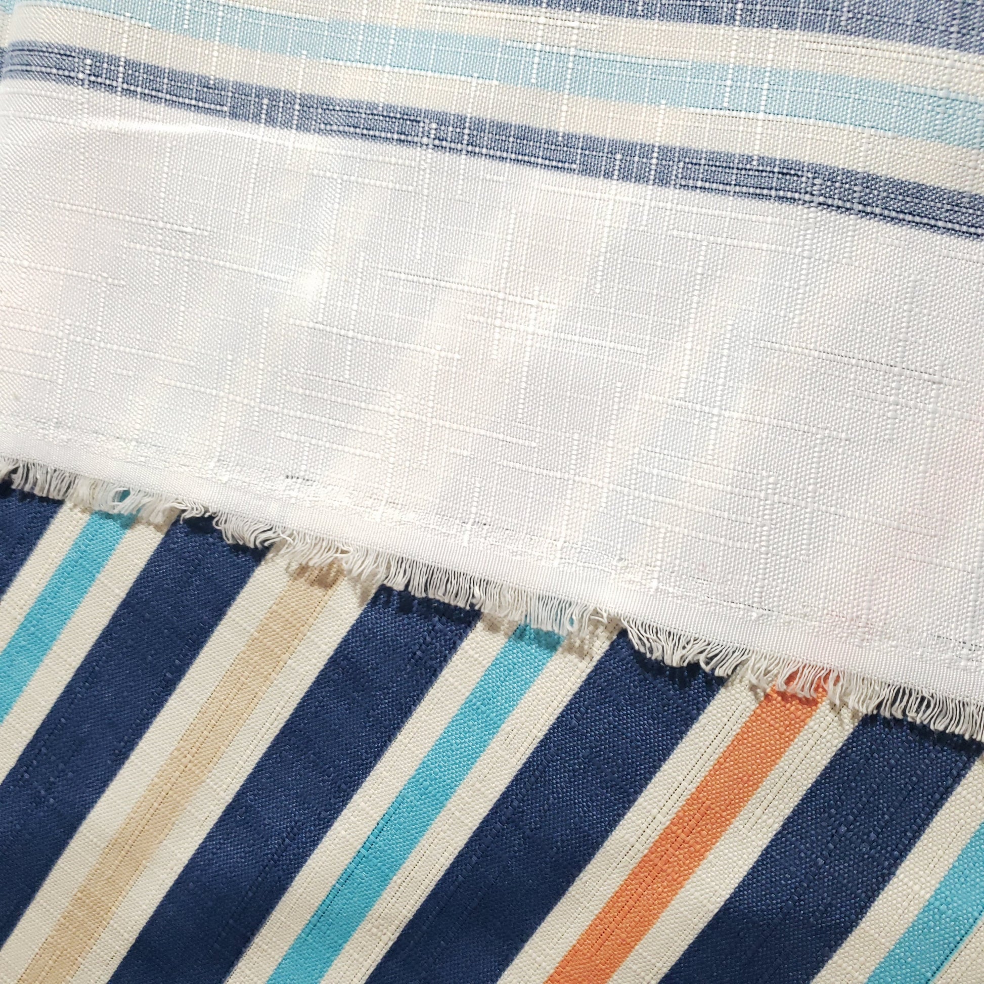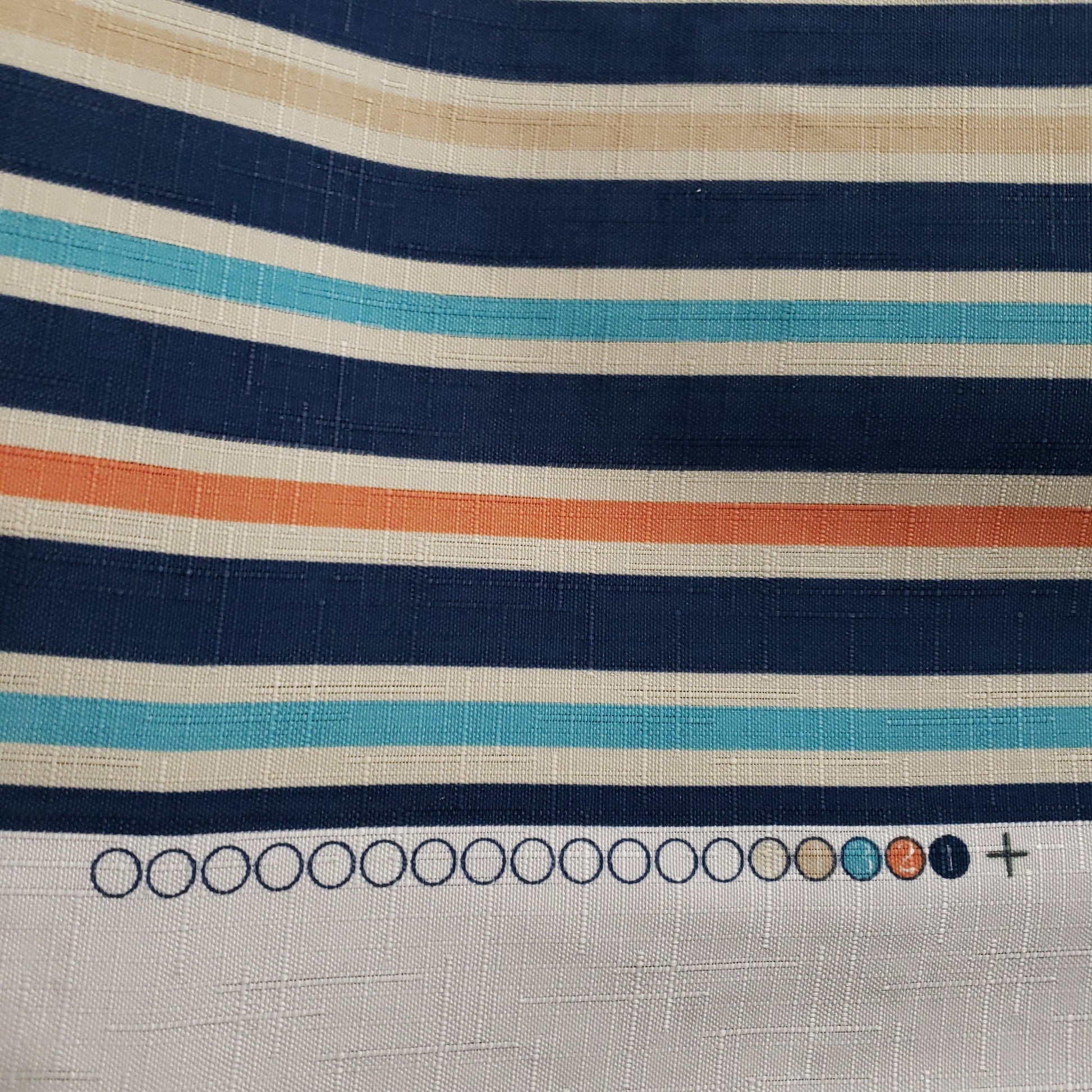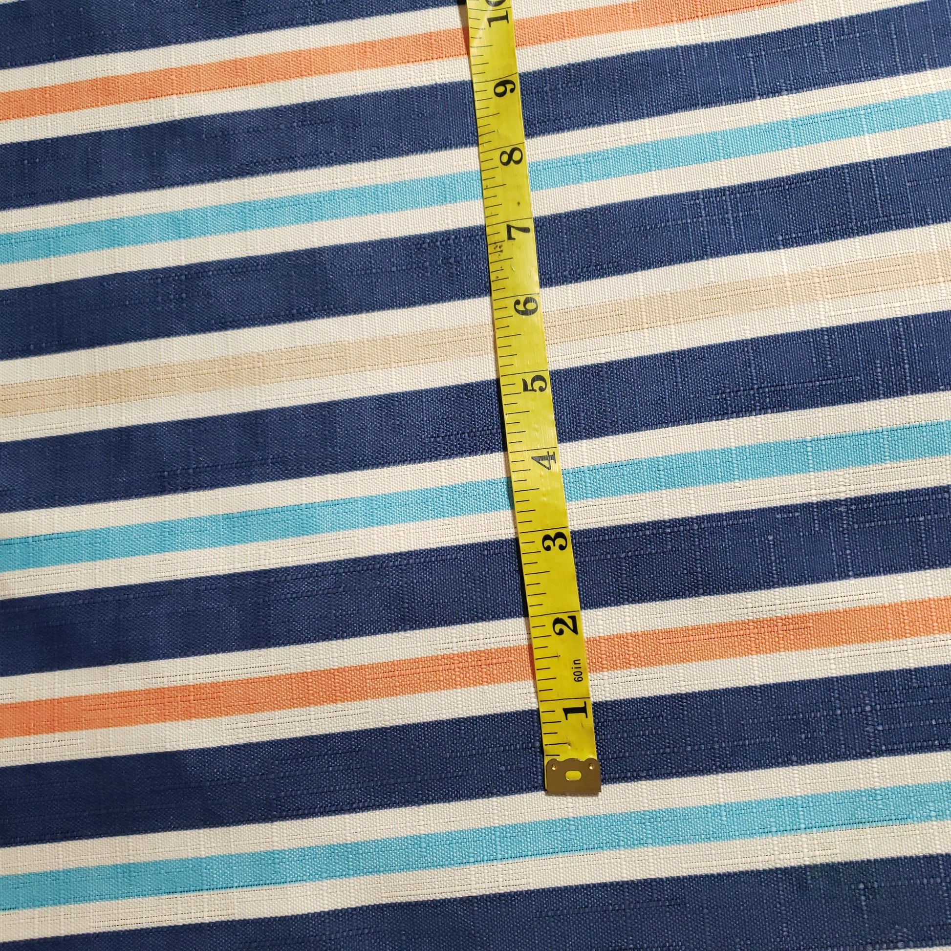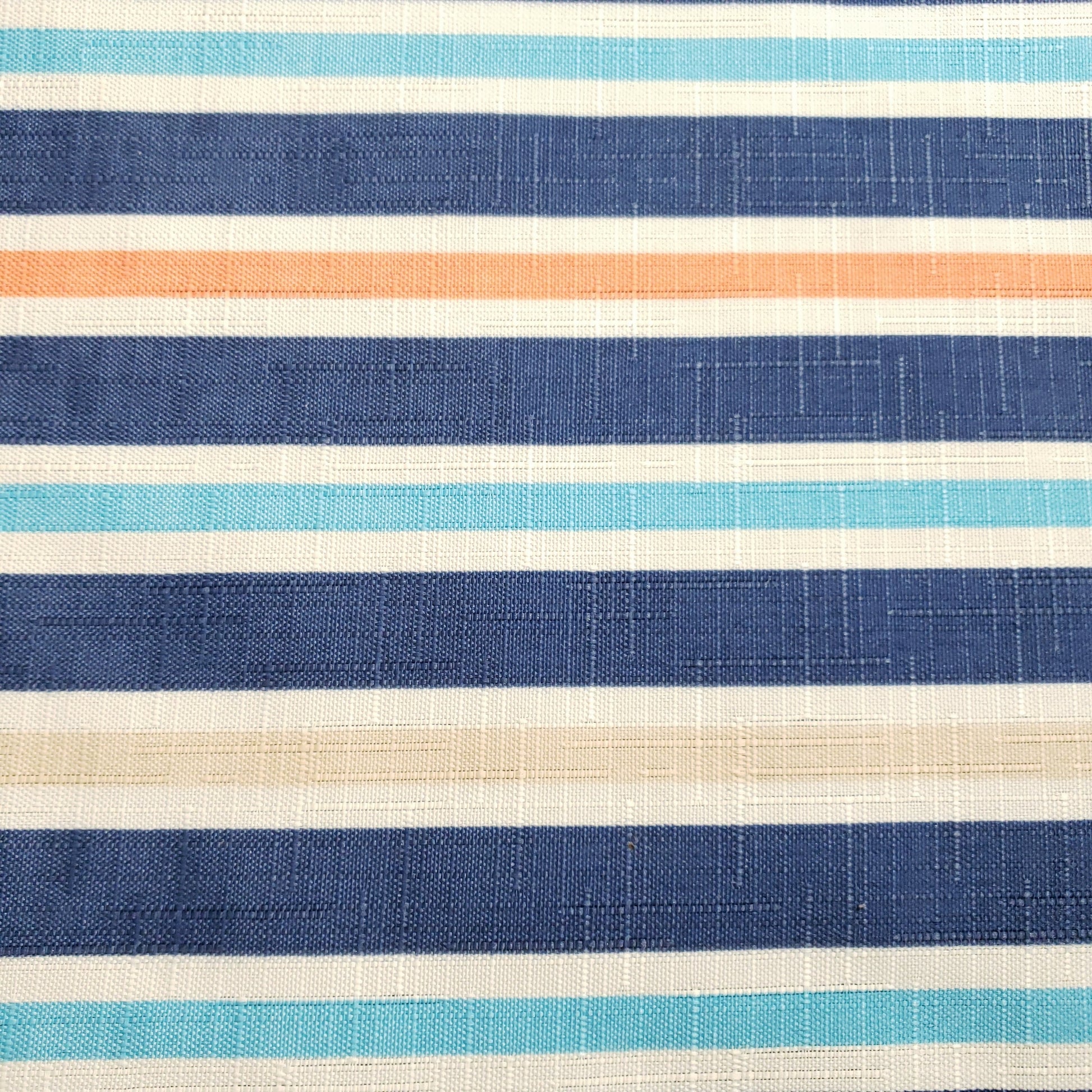 This fabric features a handsome multi-color stripe pattern in a coastal-inspired palette. As a heavyweight and supple linen, this material offers exceptional durability and a beautiful texture, making it an outstanding choice for upholstery projects, drapery, and high-use home décor items like cushions and tote bags.