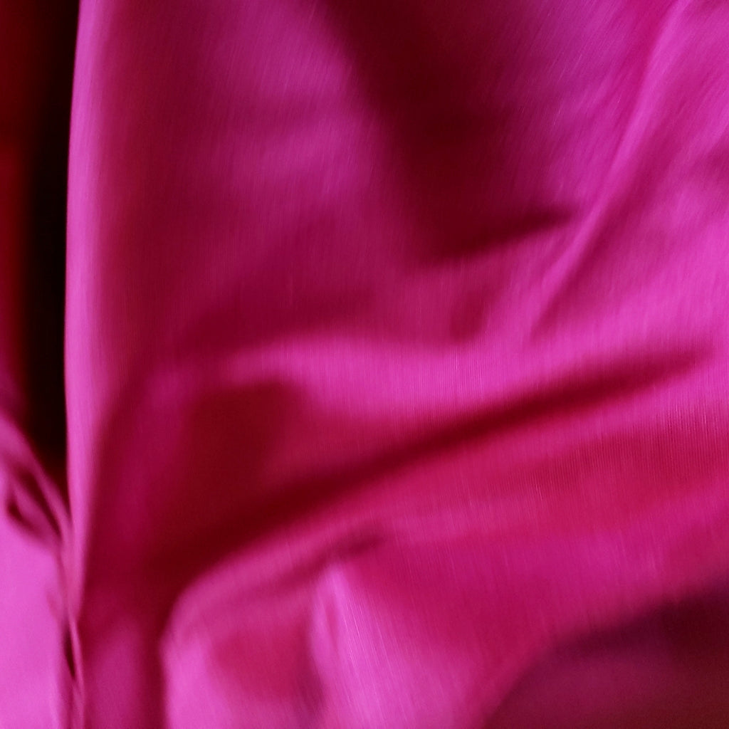 The dominant color is a bold pink. This is woven with a thin red yarn. These colors combine to create a subtle two-tone appearance. A dark pink fabric with subtle red highlights