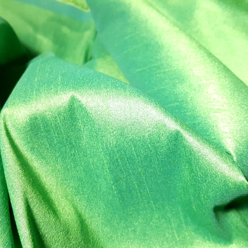 GREEN LIME TURQUOISE FAUX SILK DUPIONI