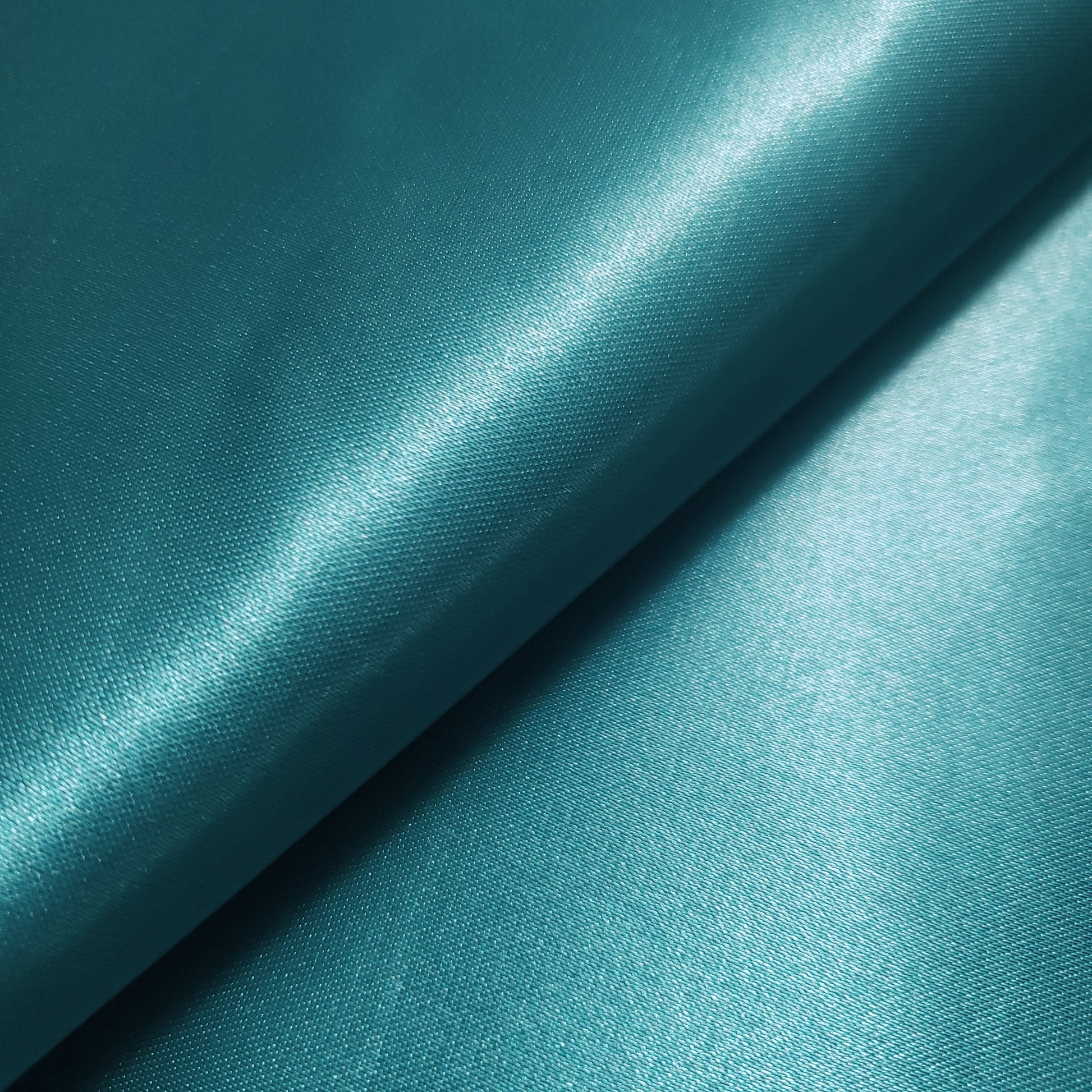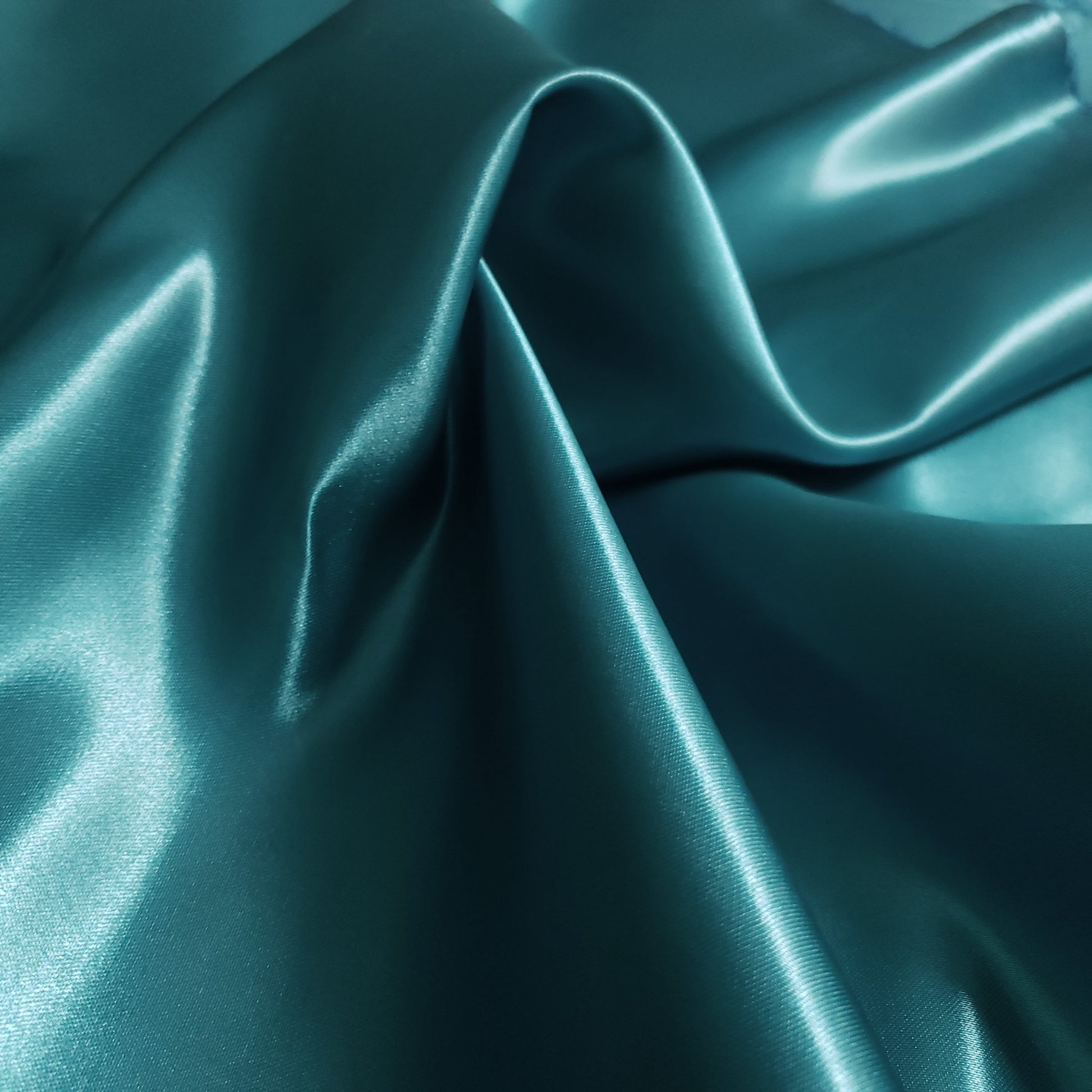 This is our green teal heavyweight Structure Satin. At 8oz per yard, this sturdy, high-sheen satin offers a billowy drape and a silky-smooth, glossy finish. Its supportive structure and luxurious feel make it perfect for bridal gowns and special occasion dresses
