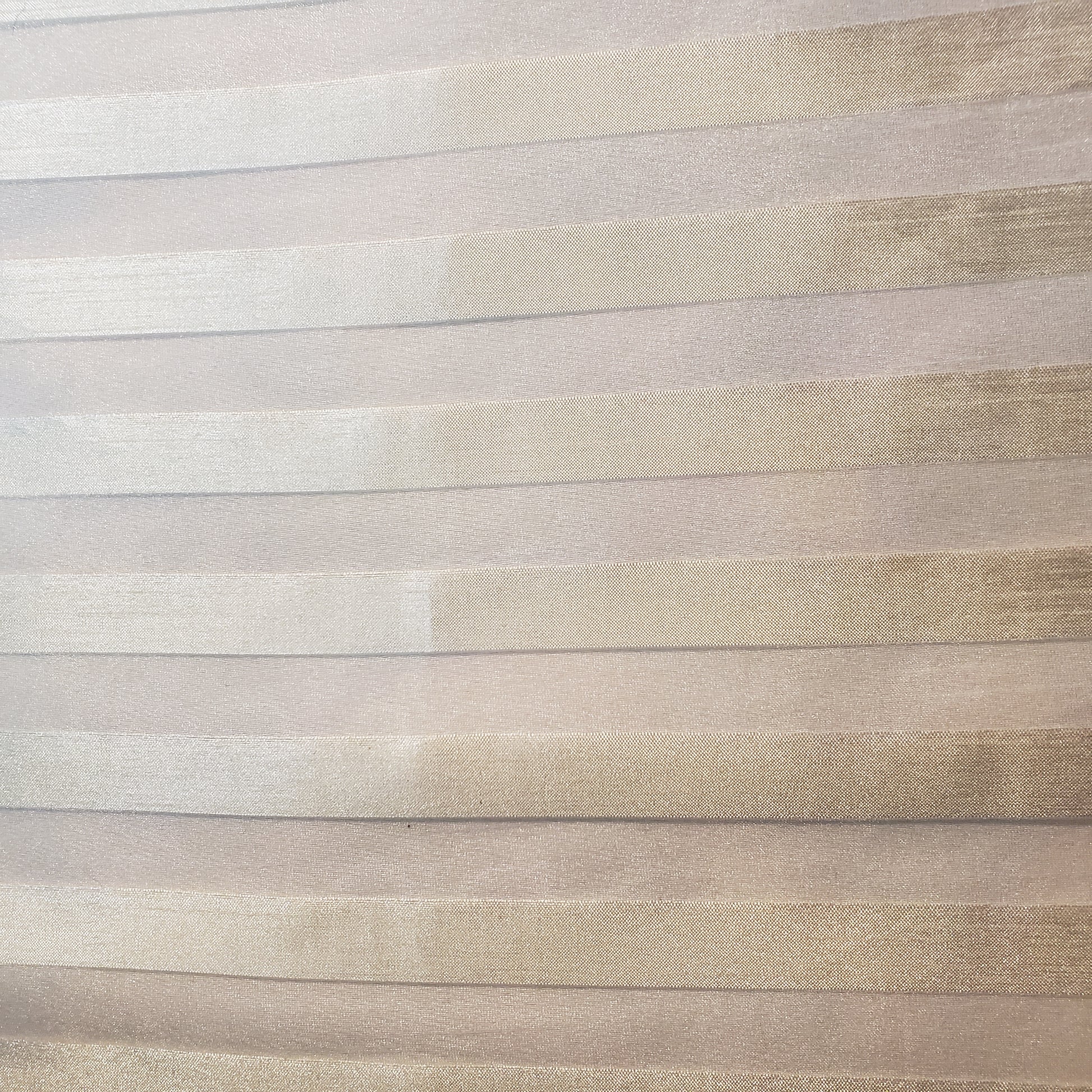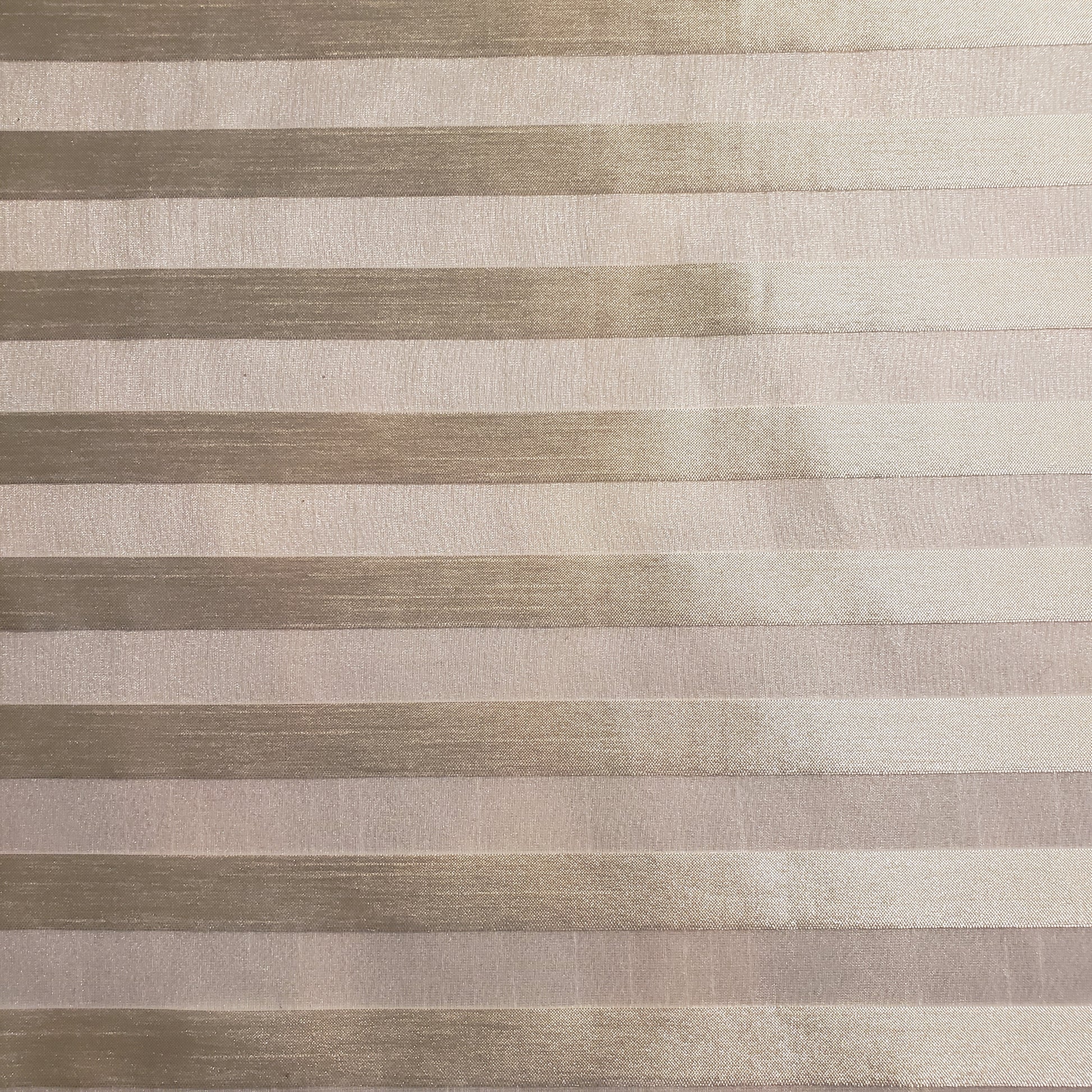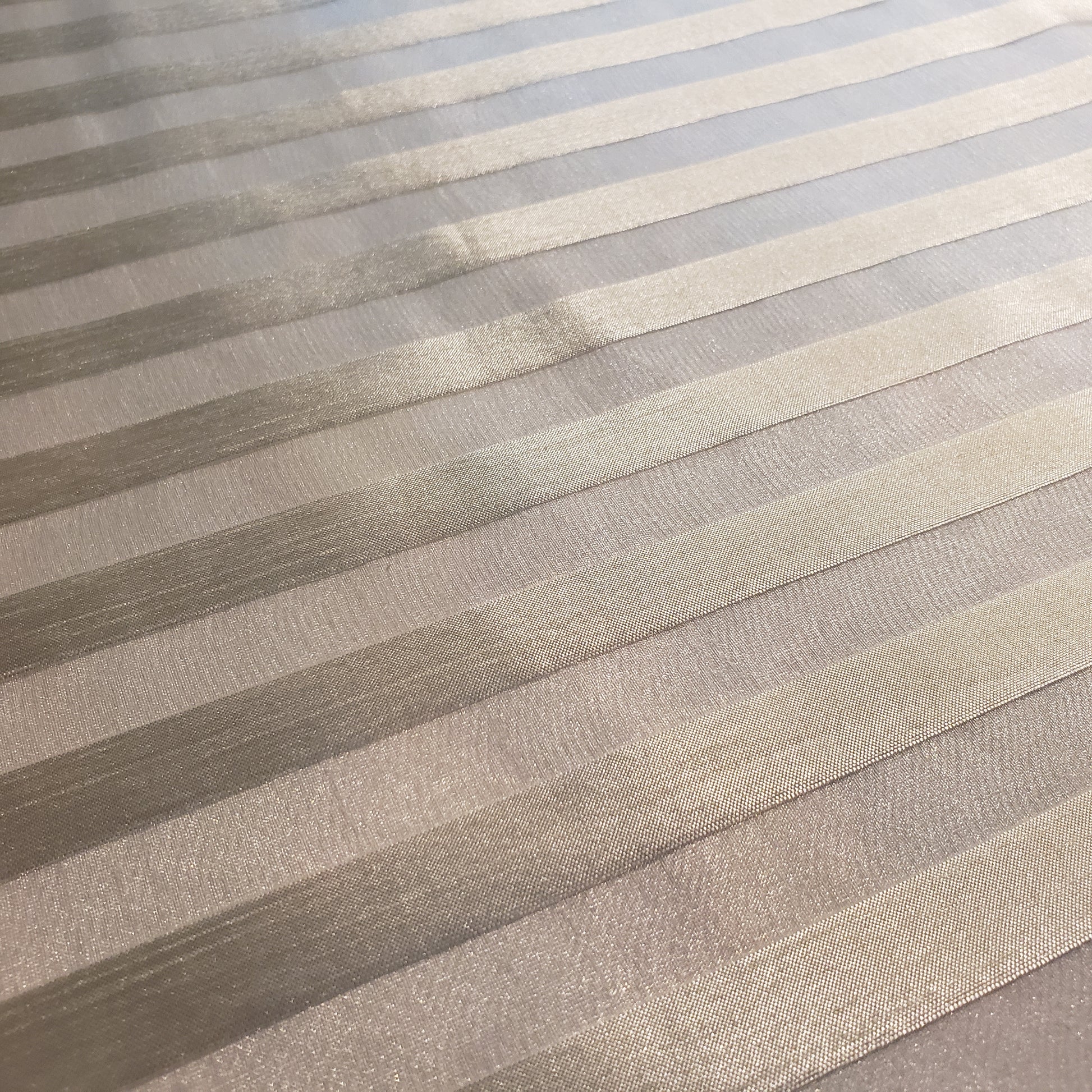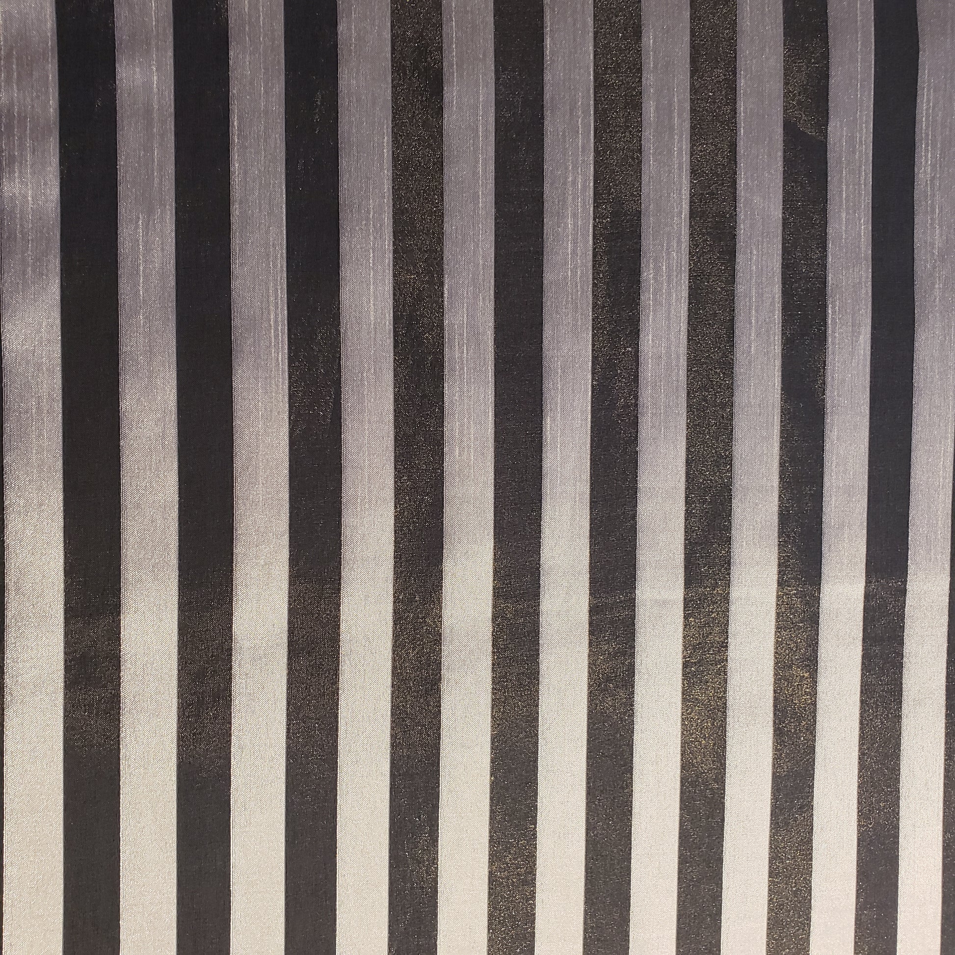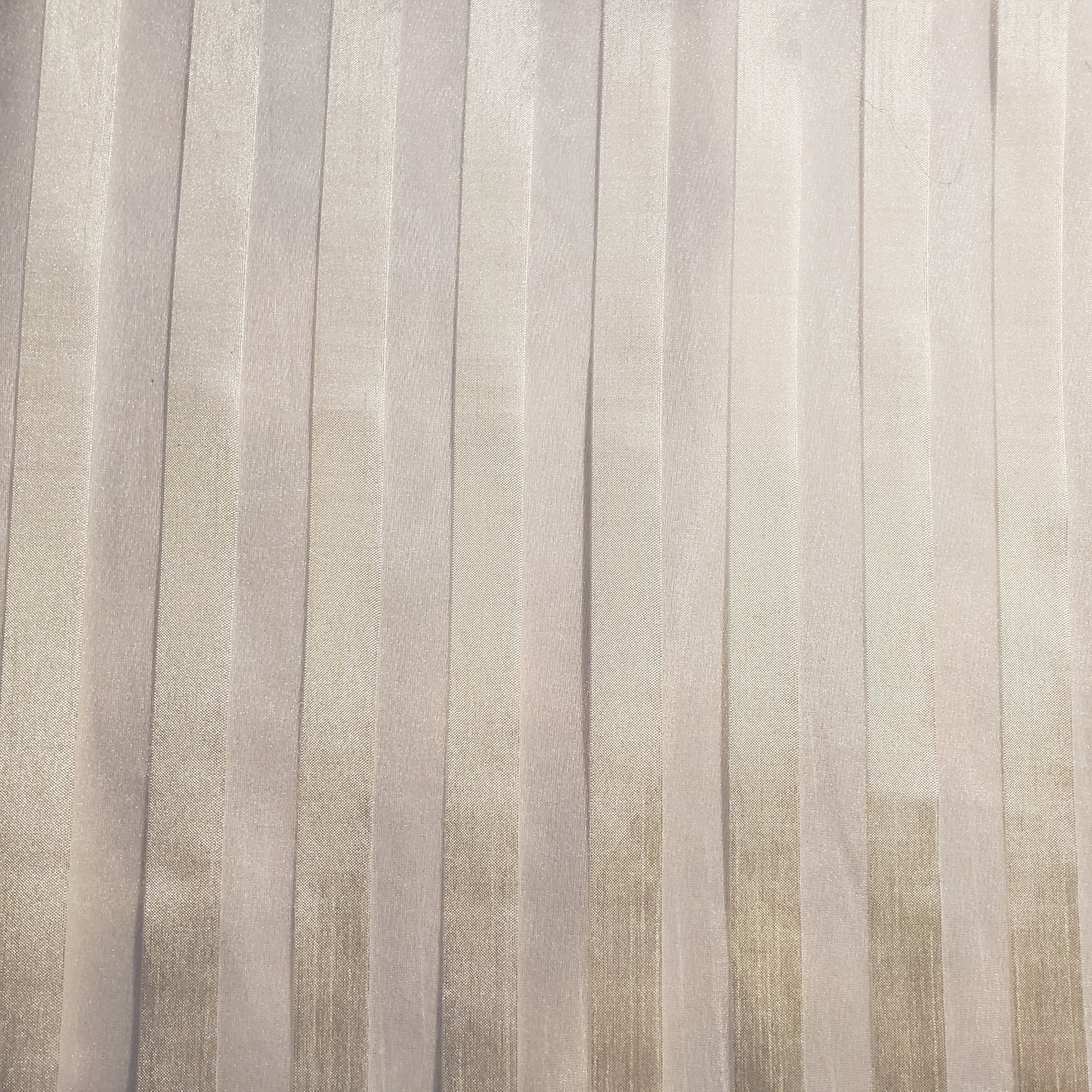 This lightweight organza features a design that alternates between a glossy solid ribbon and a sheer crystal organza stripe. The stripe runs from selvage edge to selvage edge.