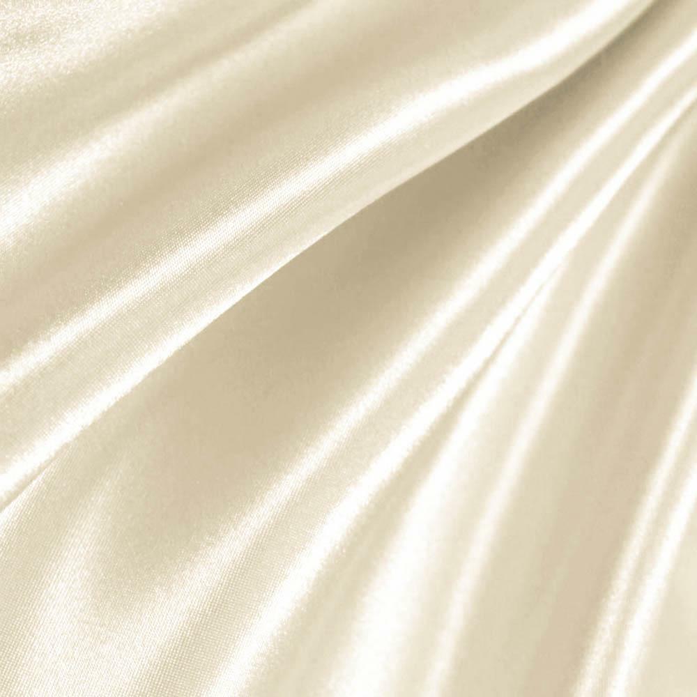 This medium-weight satin is crafted from 100% polyester and measures 58 inches in width. The fabric features a high-gloss, lustrous front face with a contrasting matte finish on the back. It is a stable, non-stretch material, making it easy to handle for various sewing projects. The soft ivory hue is consistent and richly saturated, ideal for applications that require a pop of brilliant color.