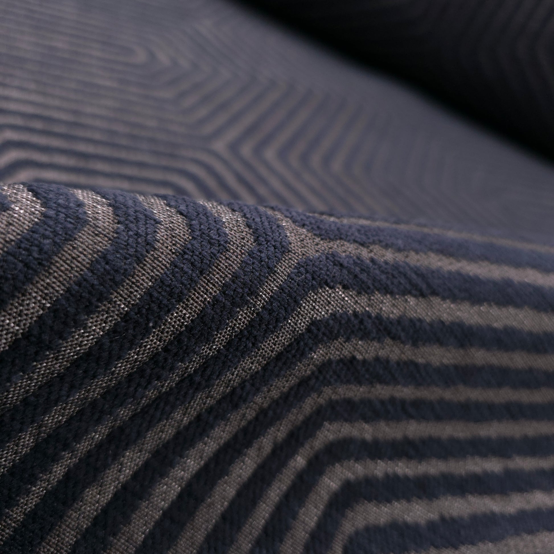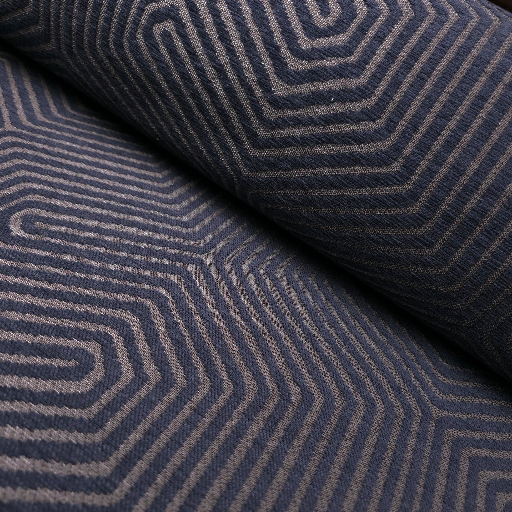 This modern upholstery is the ultimate in durability and style with this Muse Fabric geometric chenille. A bold, labyrinth-style pattern in raised navy chenille brings incredible texture and visual interest, while the robust, very heavyweight construction makes it perfect for your most demanding upholstery projects. Transform your furniture with this stunning, contemporary textile.