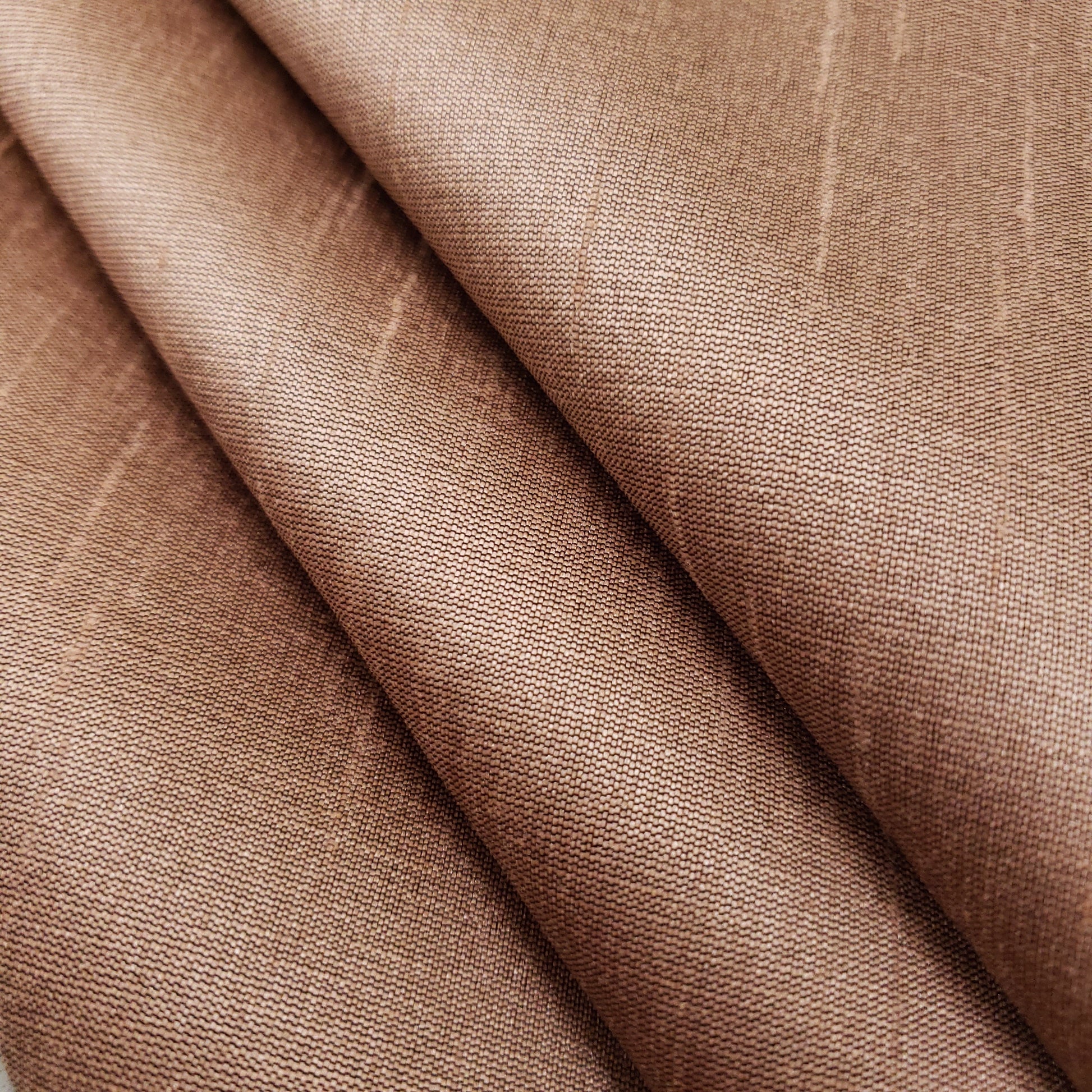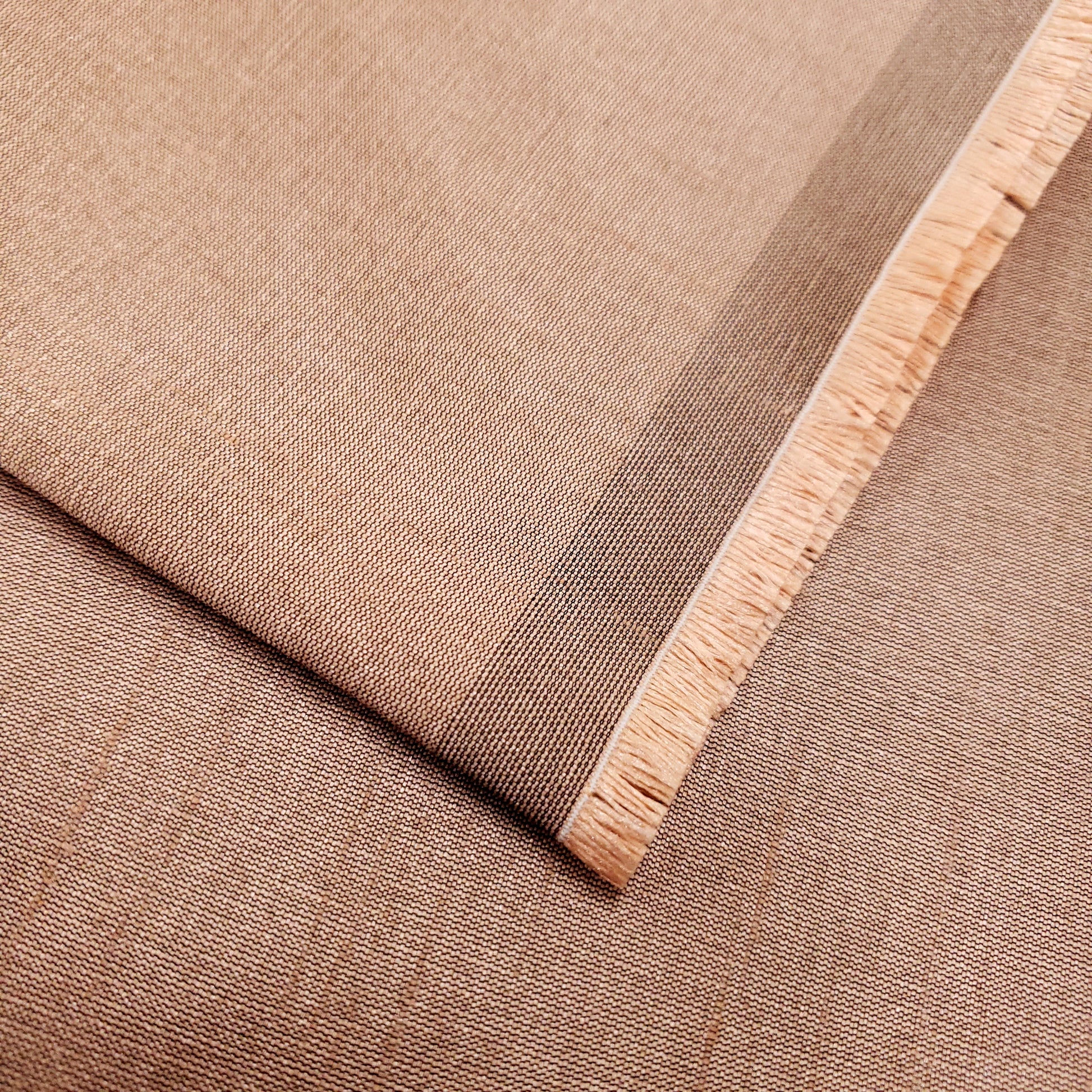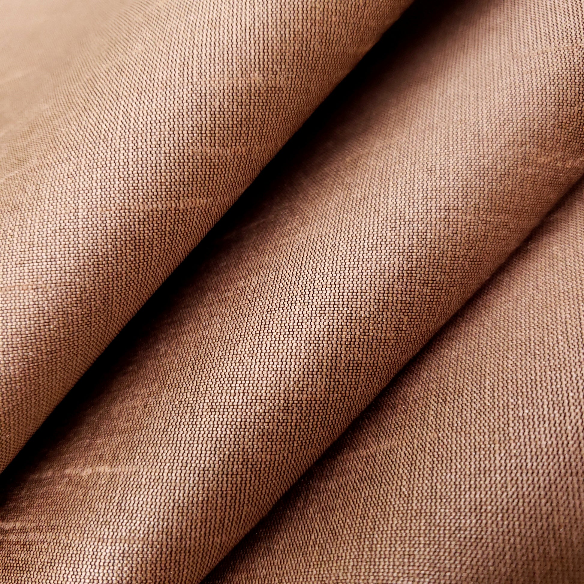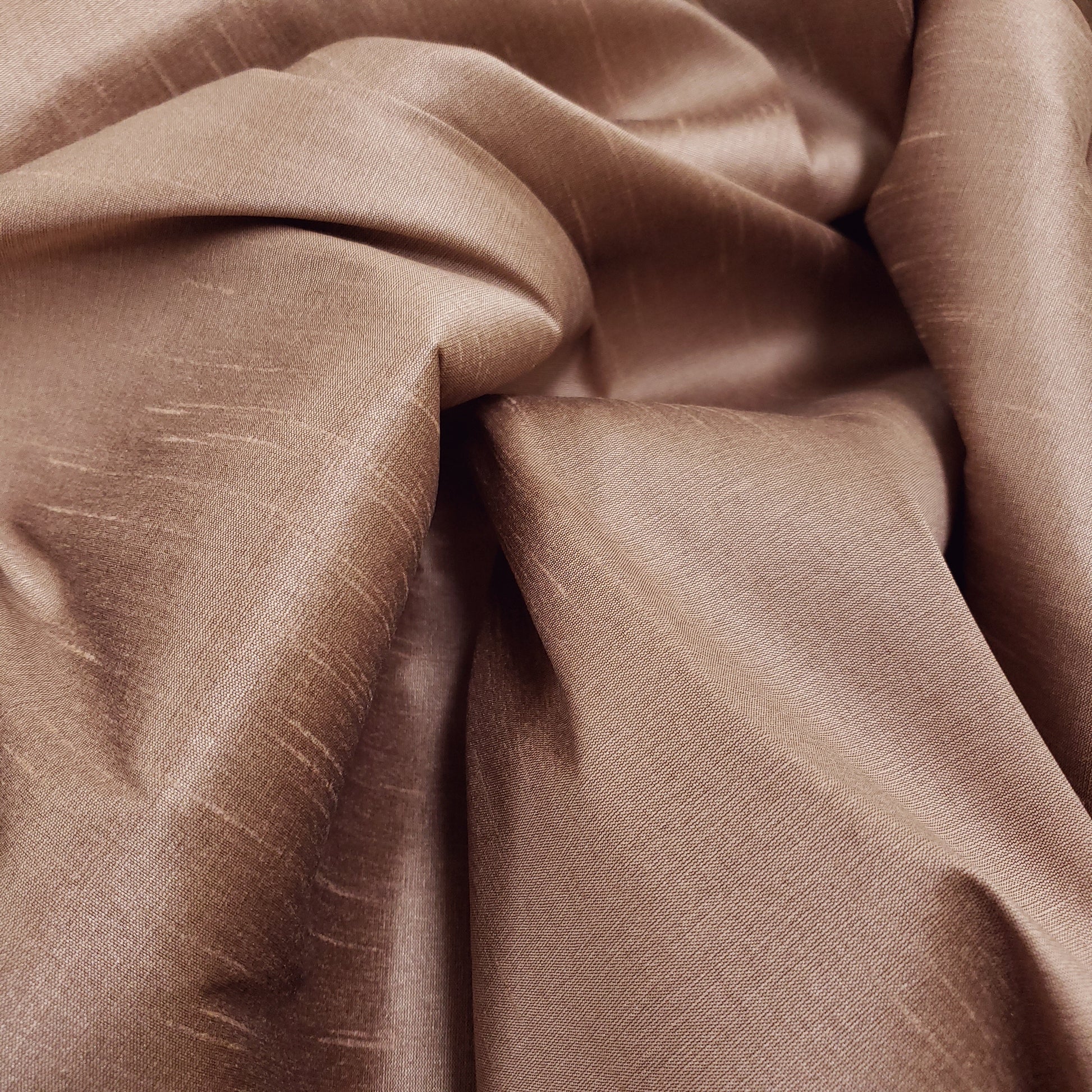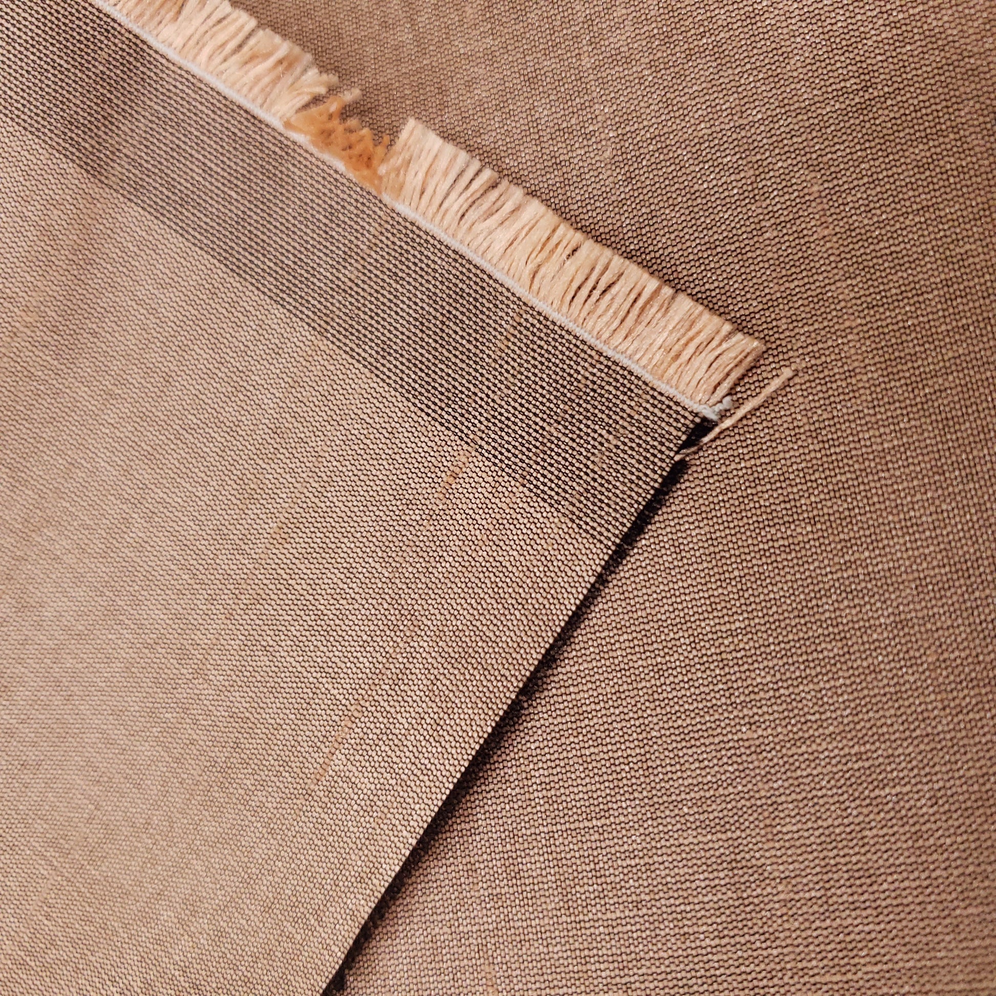 Dupioni fabric is a plain-woven fabric. Using a fine yard on the warp and an uneven yarn on the weft. This creates visual and textural raised thin stripes in the fabric. The thread used here has a subtle sheen to it. giving it a subtle color refracting iridescence.