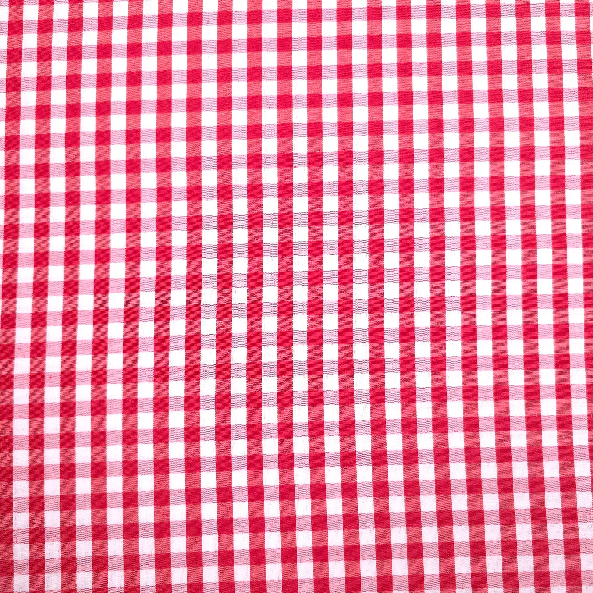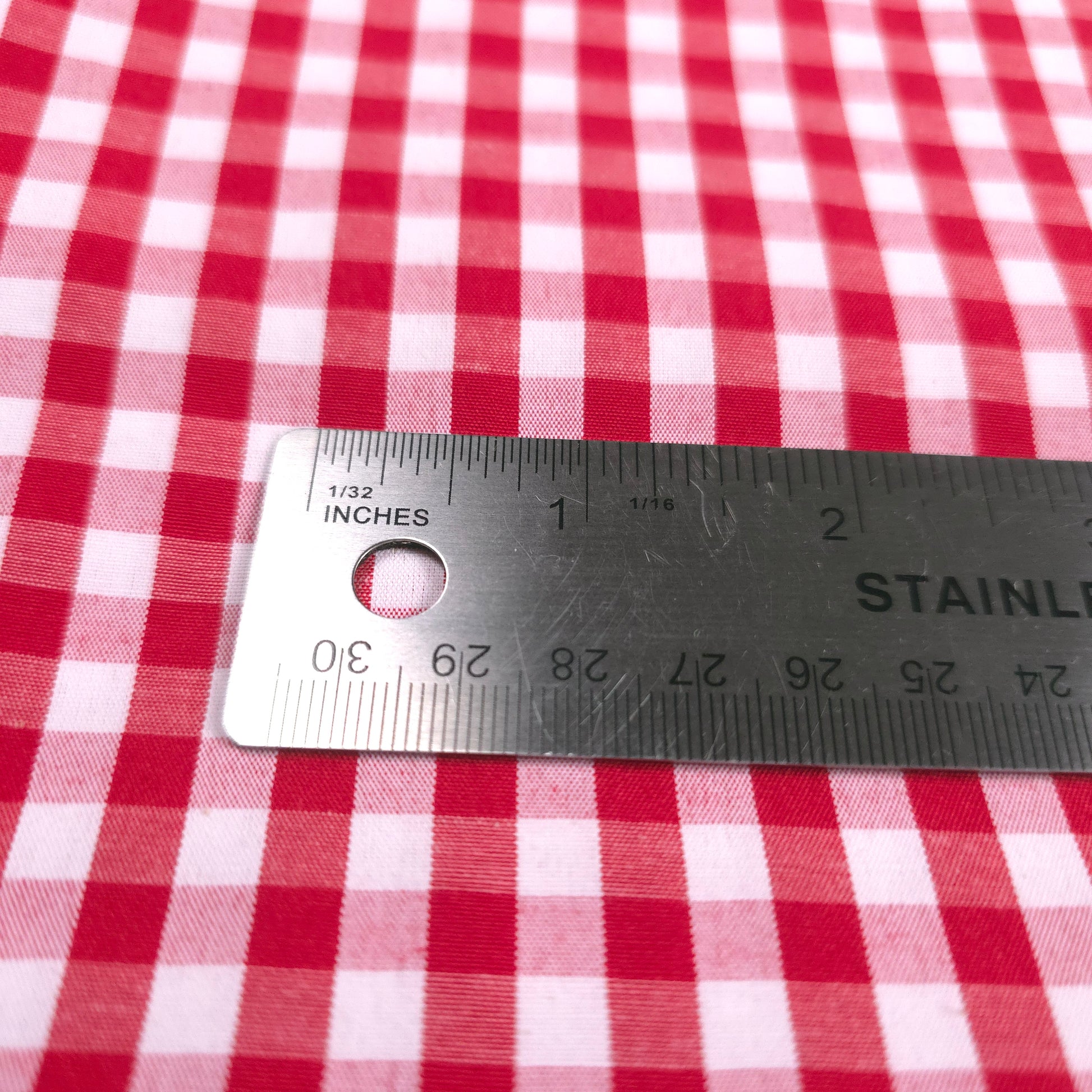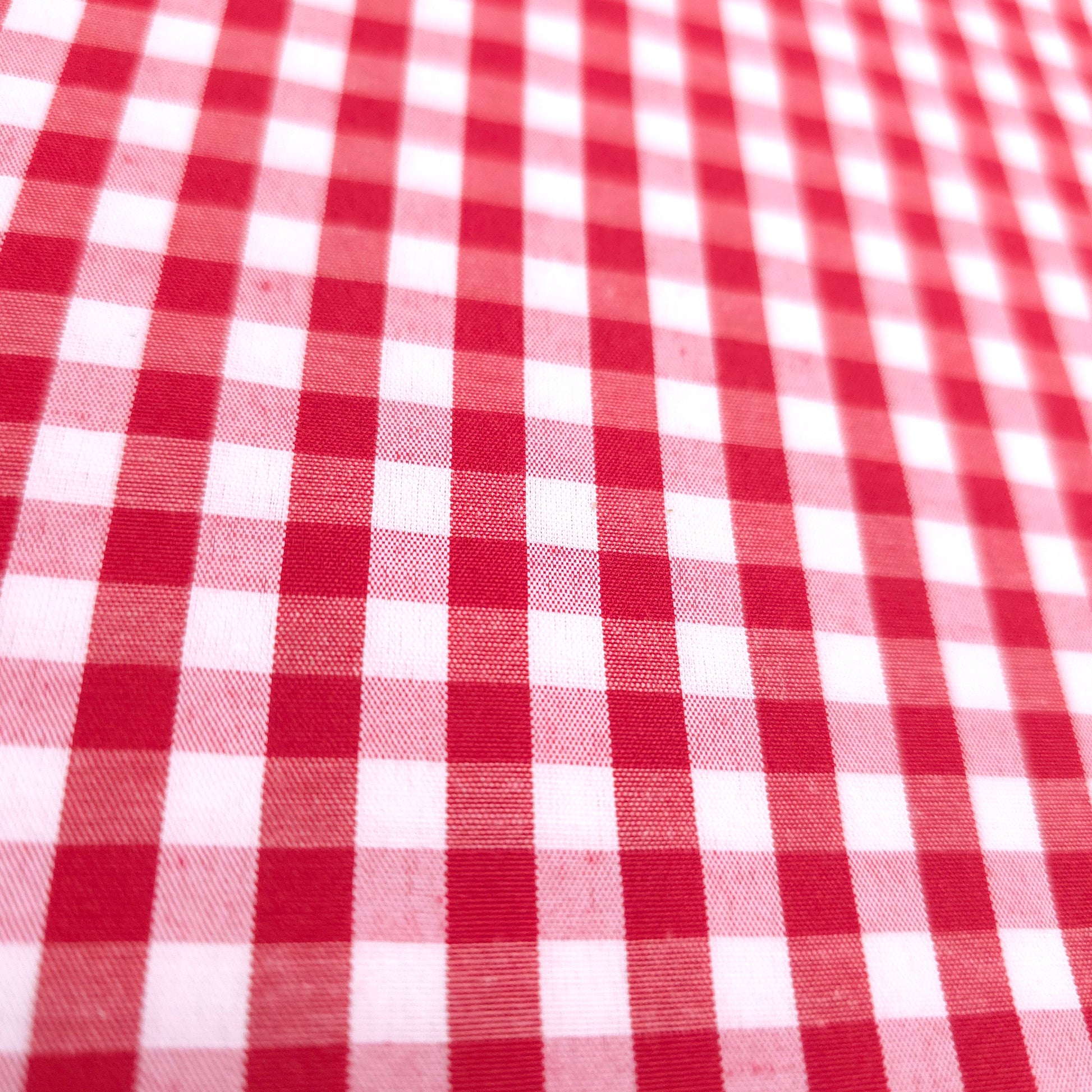 This fabric features a classic 1/4 inch red and white gingham pattern. Crafted from a durable 80/20 poly-cotton blend, this material offers the benefits of both fibers: the crispness and wrinkle-resistance of polyester with the soft, breathable touch of cotton. Its versatile light-to-medium weight and smooth finish are perfectly suited for a wide range of projects, from iconic picnic tablecloths and retro kitchen decor to charming apparel and holiday crafts. This no-stretch fabric is 58 inches wide and sold by the yard for all your creative needs.