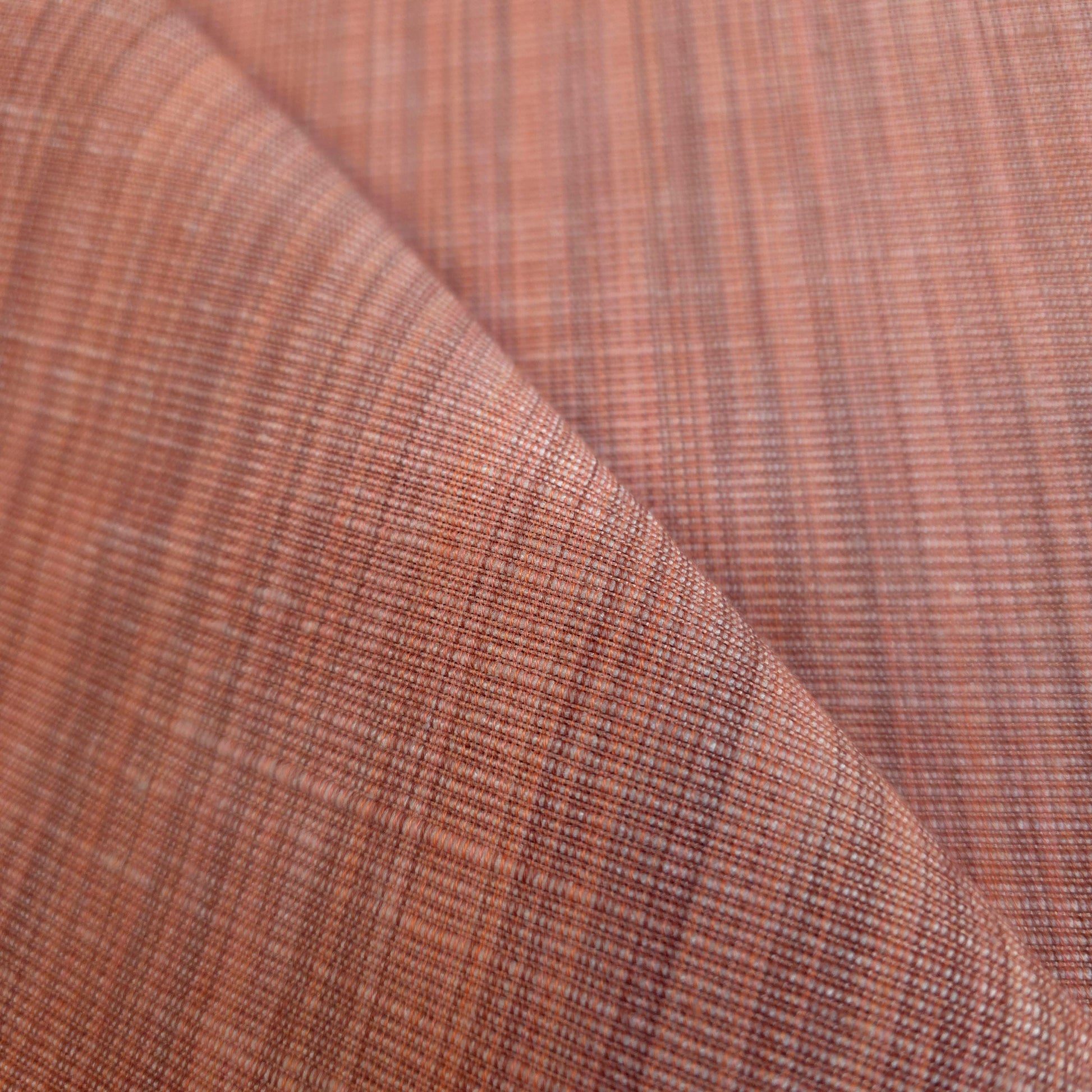 This is a heavy upholstery fabric with a rustic slub weave, characterized by irregular, textured yarns that create subtle variations in thickness and a natural, organic look. The fabric displays a blended coloration, appearing as a mix of muted peach melon and terracotta tones interwoven with multi color bluish-grey threads, giving it a mottled or heathery effect. The overall color can be described as a light peach orange.
