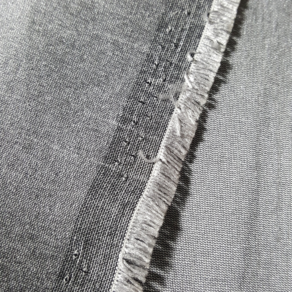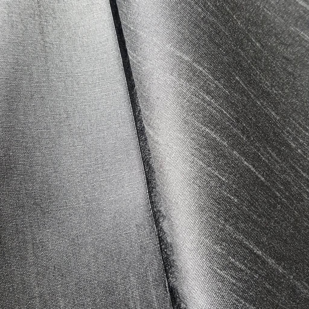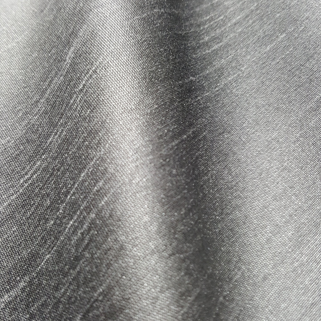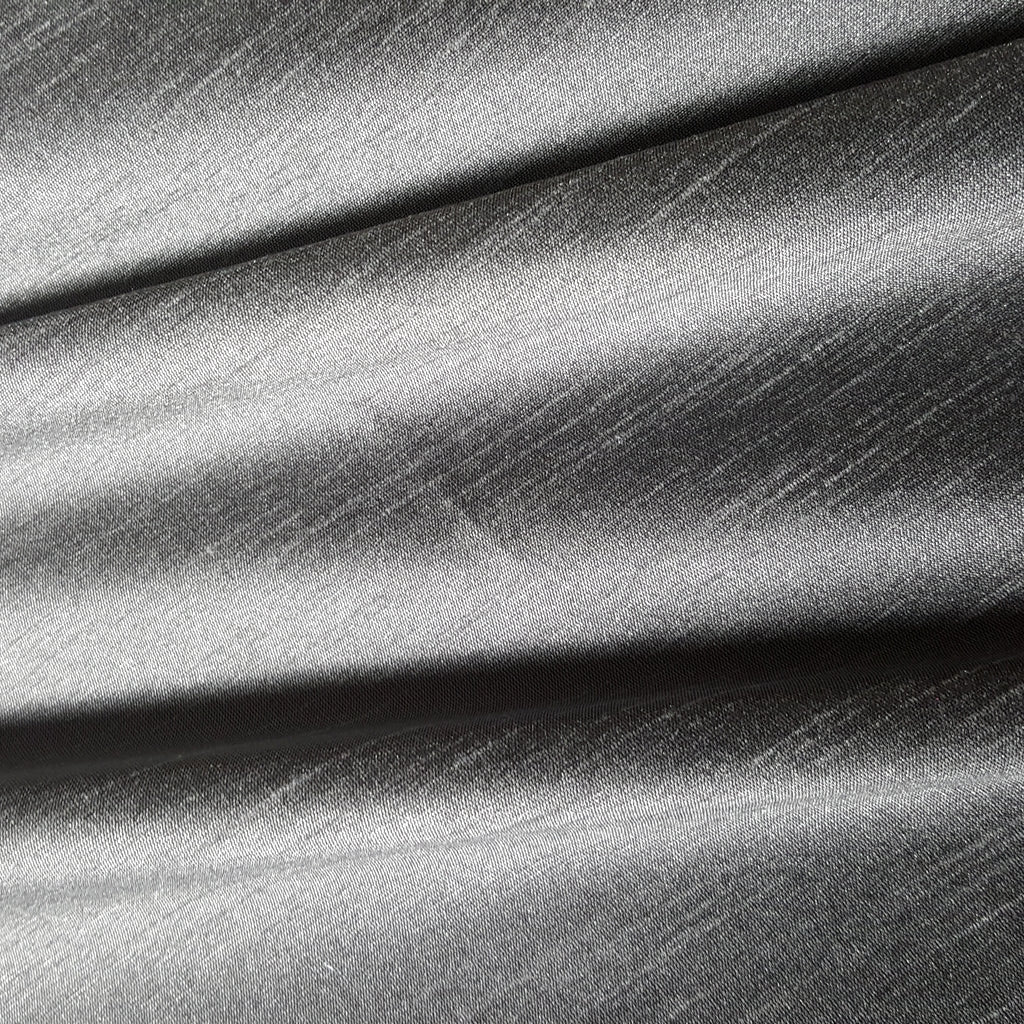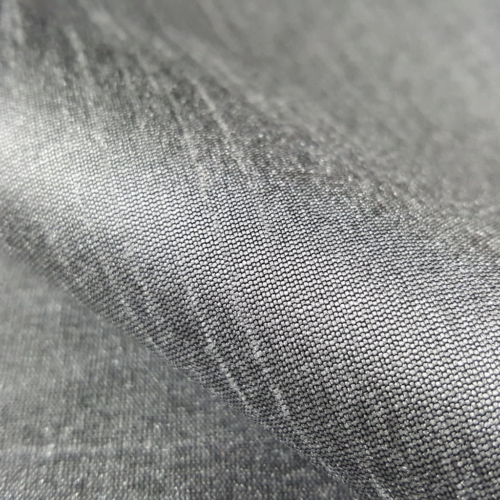 Dupioni fabric is a plain-woven fabric. Using a fine yard on the warp and an uneven yarn on the weft. This creates visual and textural raised thin stripes in the fabric. The thread used here has a subtle sheen to it. giving it a subtle color refracting iridescence.