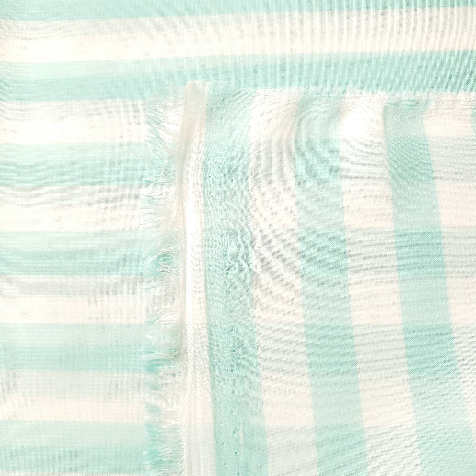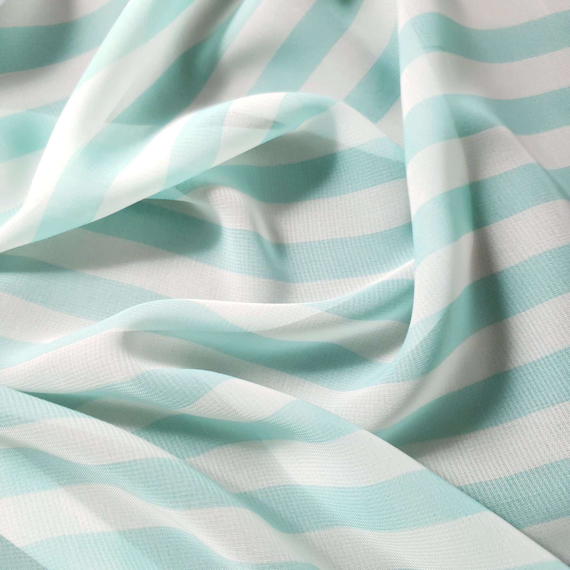 This lightweight, semi-sheer fabric features a beautiful half-inch stripe running parallel to the selvage. Perfect for creating airy, romantic garments like dresses, blouses, and scarves.