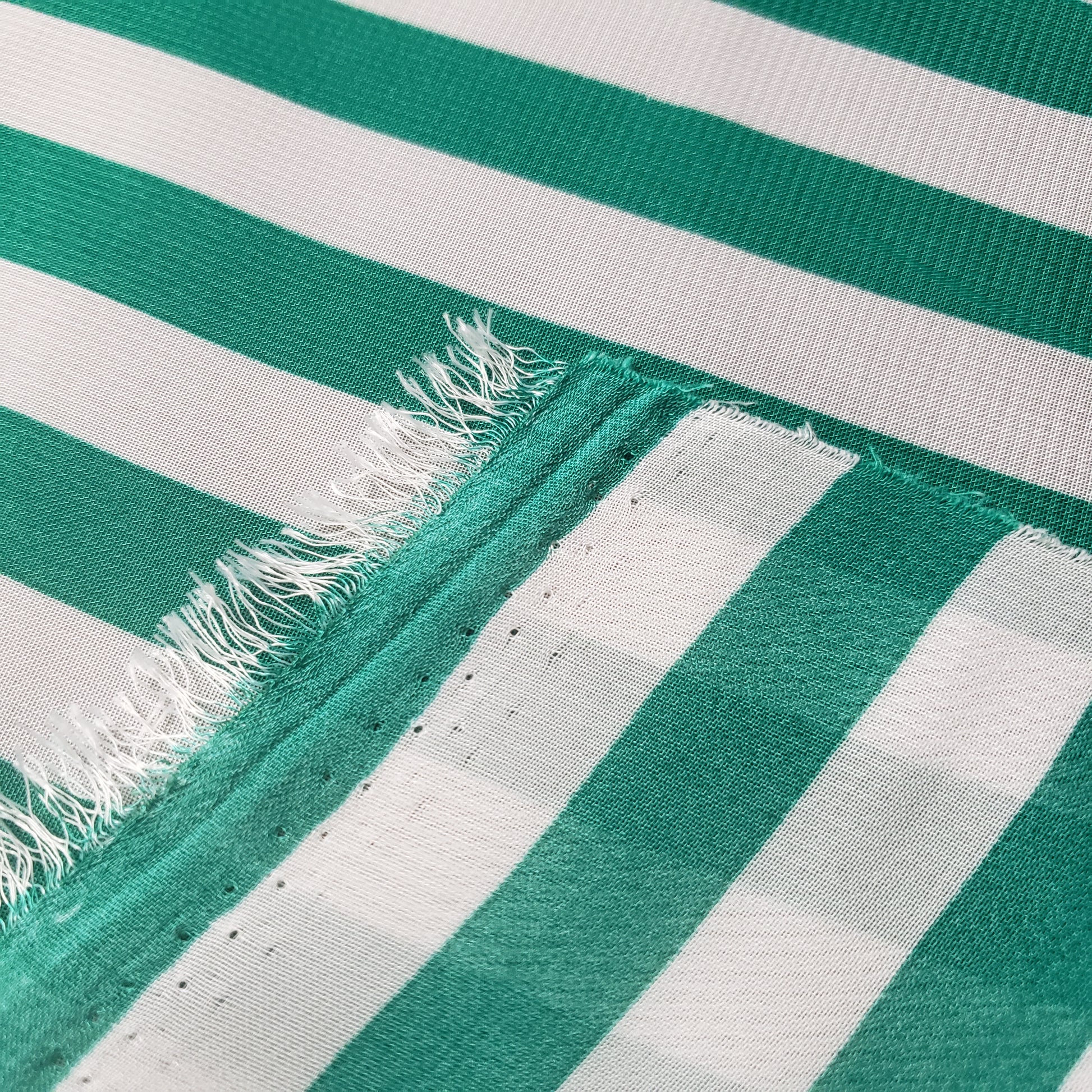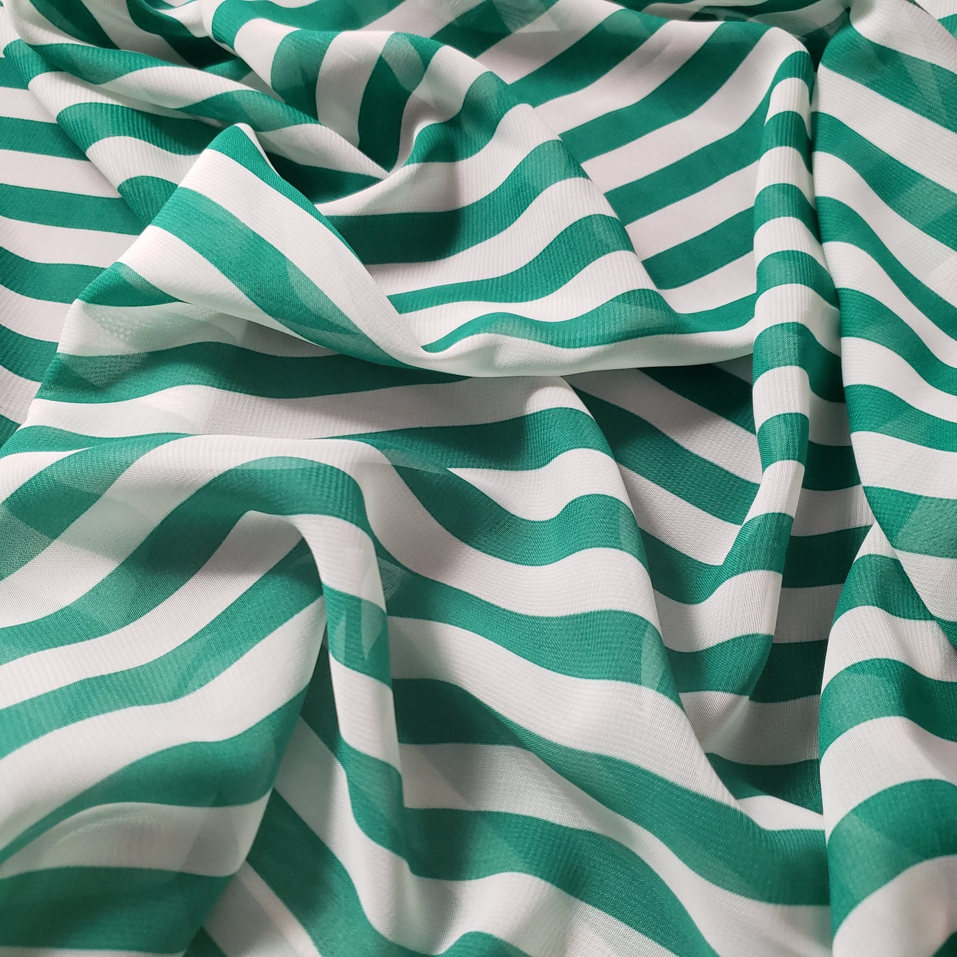 This lightweight, semi-sheer fabric features a beautiful half-inch stripe running parallel to the selvage. Perfect for creating airy, romantic garments like dresses, blouses, and scarves.