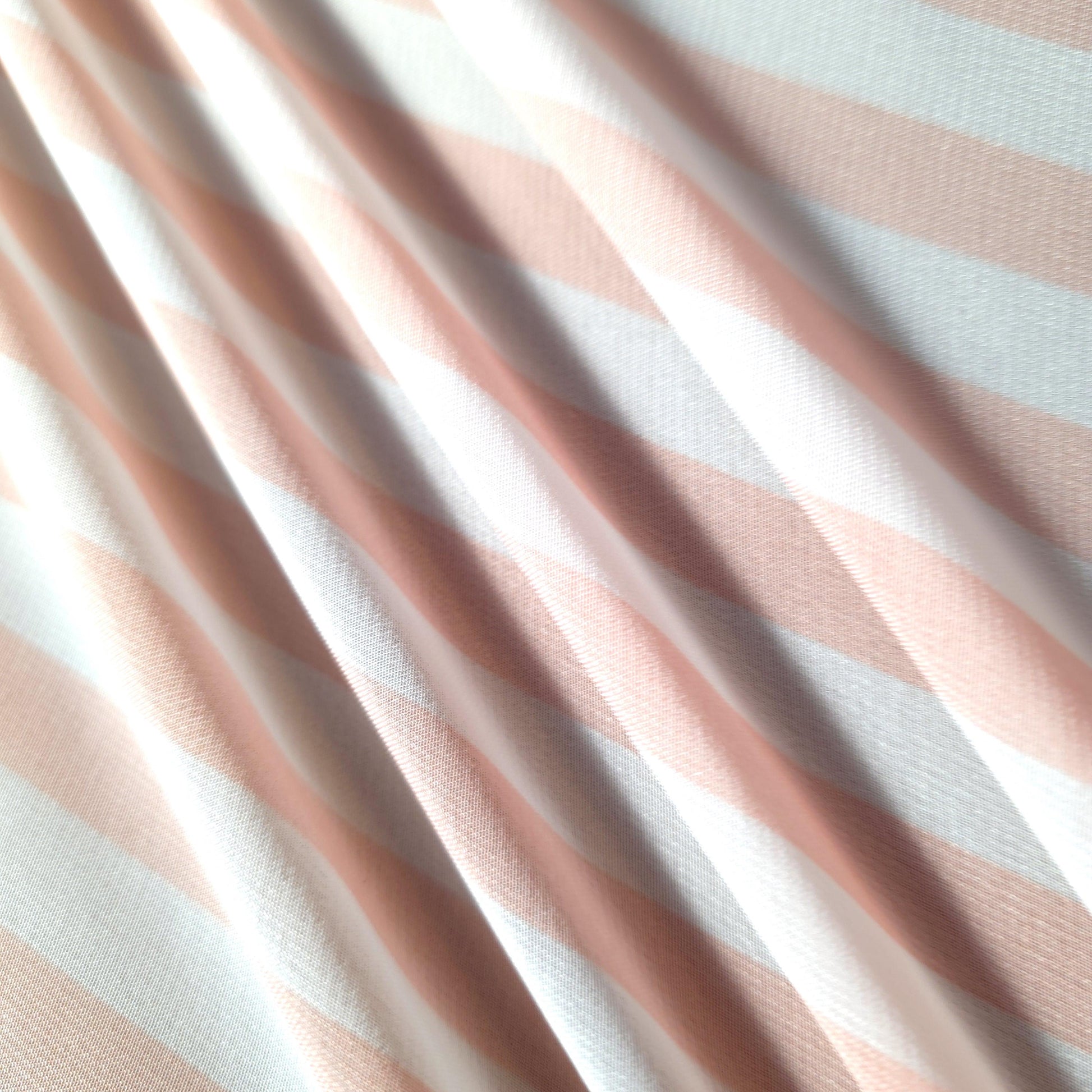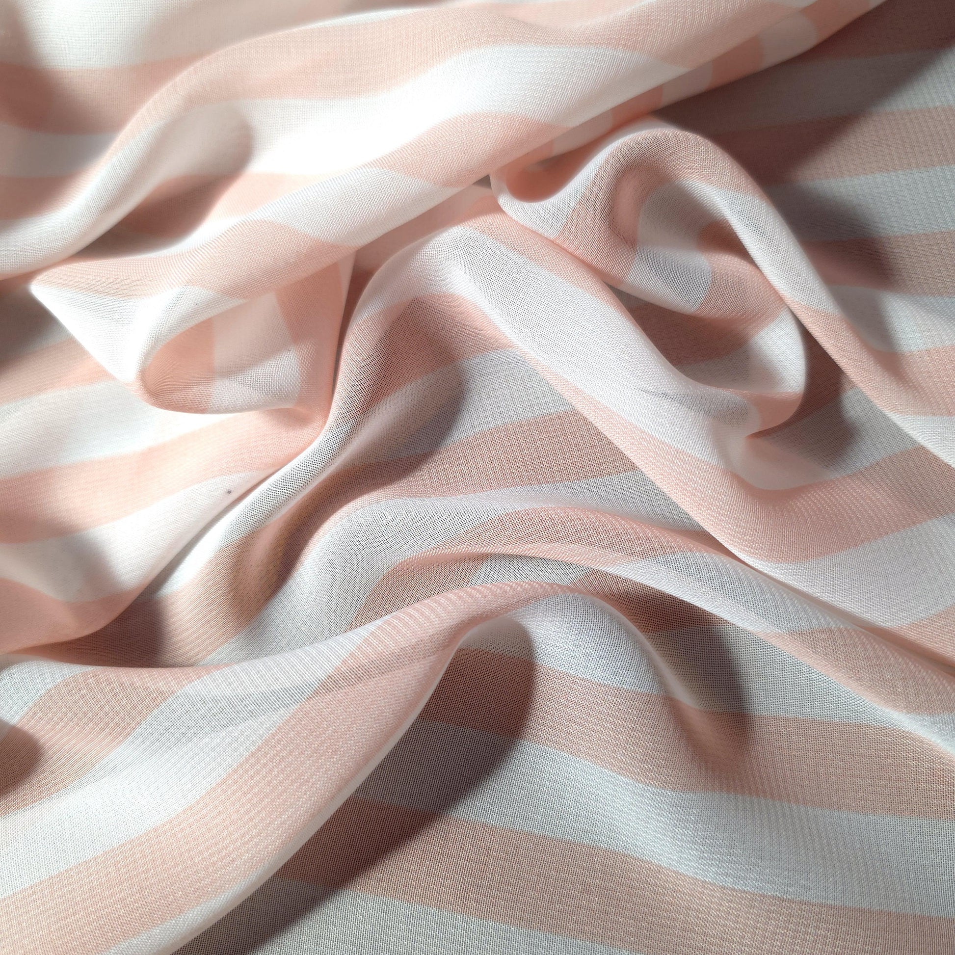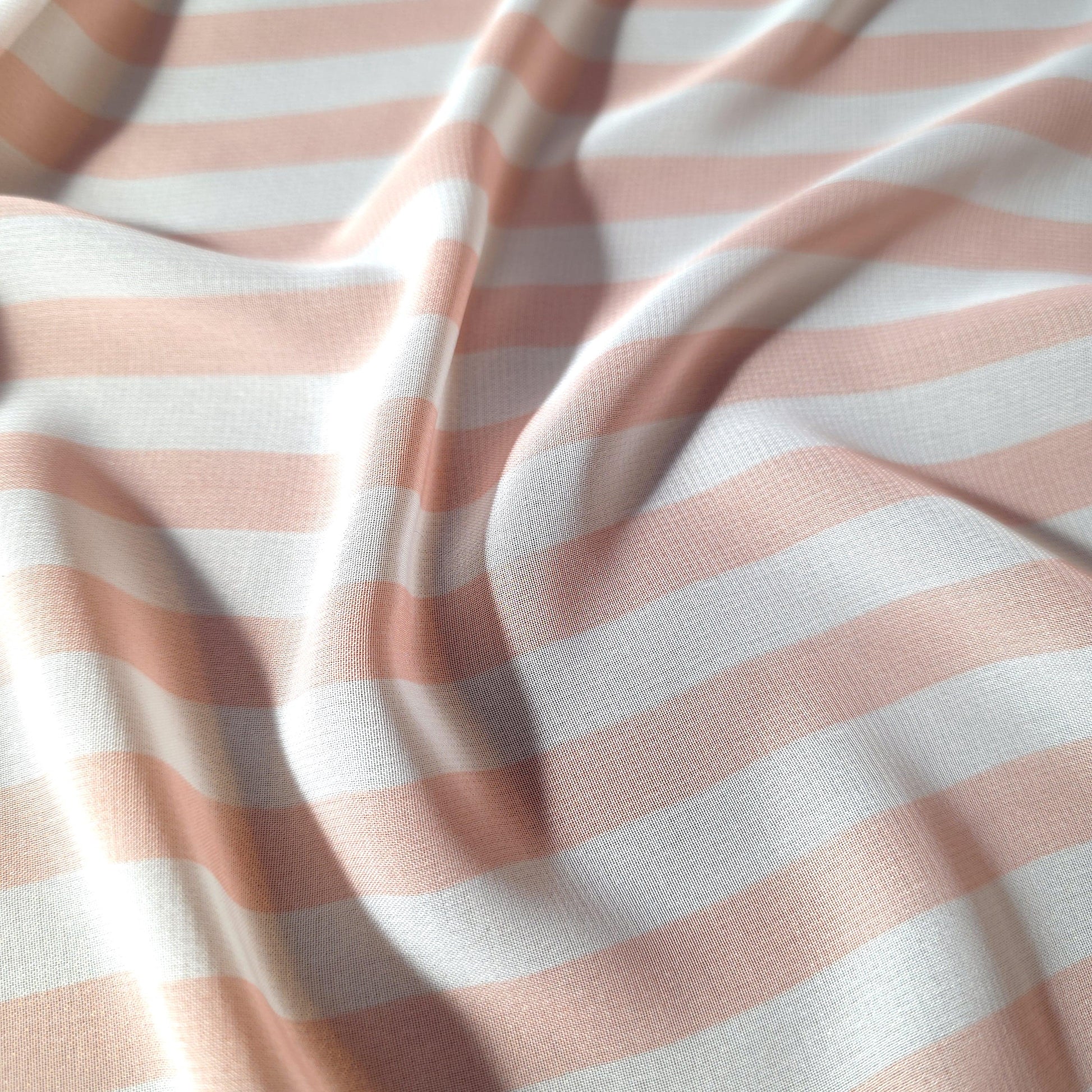 This lightweight, semi-sheer fabric features a beautiful half-inch stripe running parallel to the selvage. Perfect for creating airy, romantic garments like dresses, blouses, and scarves.