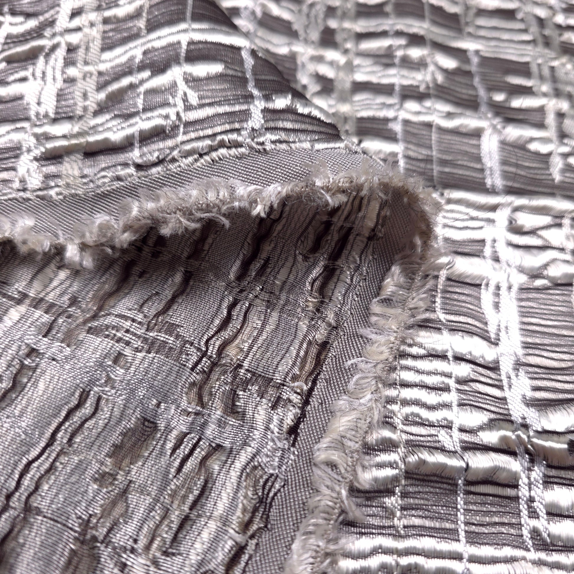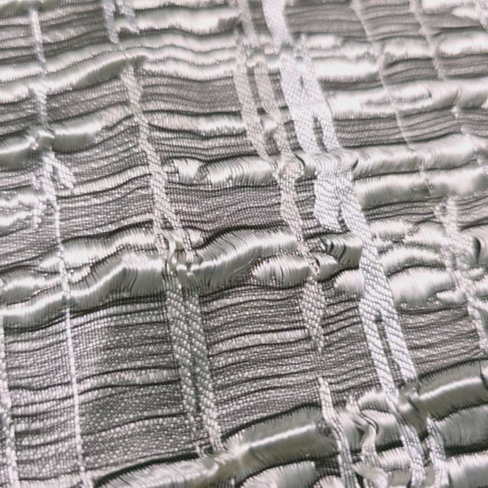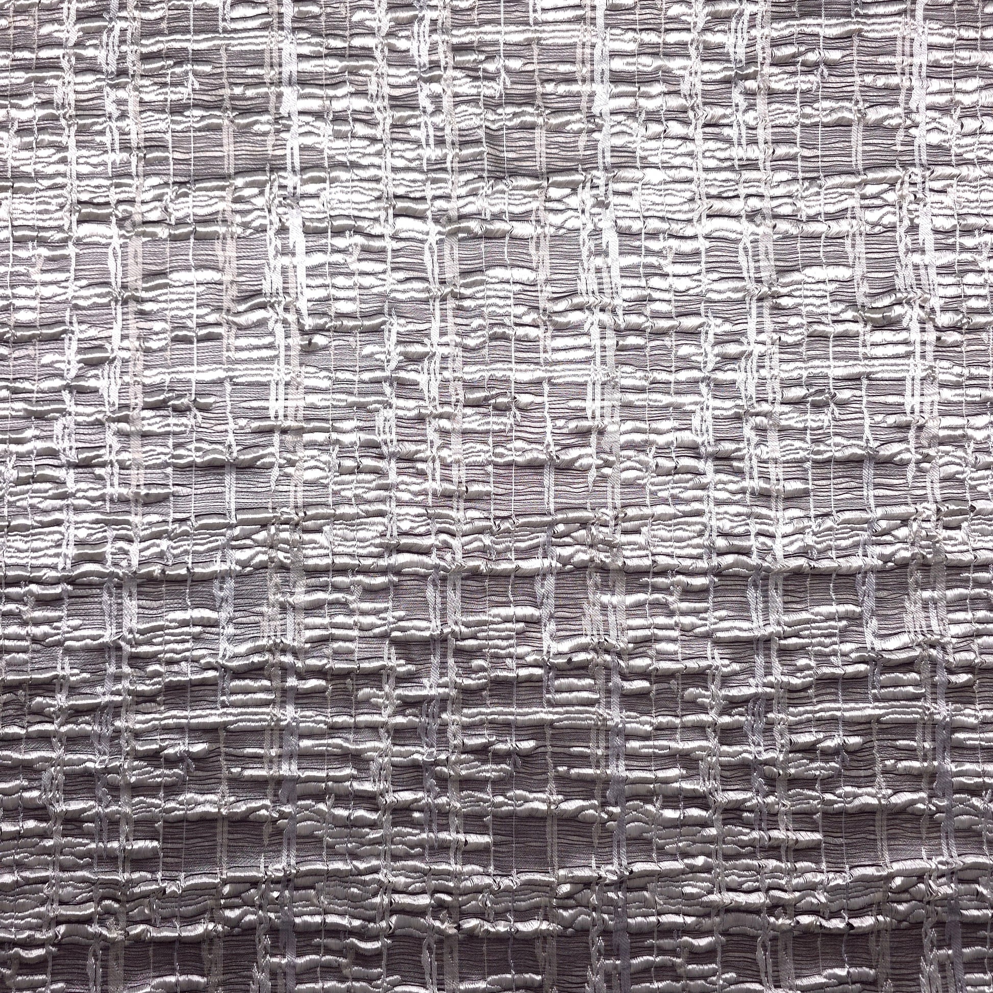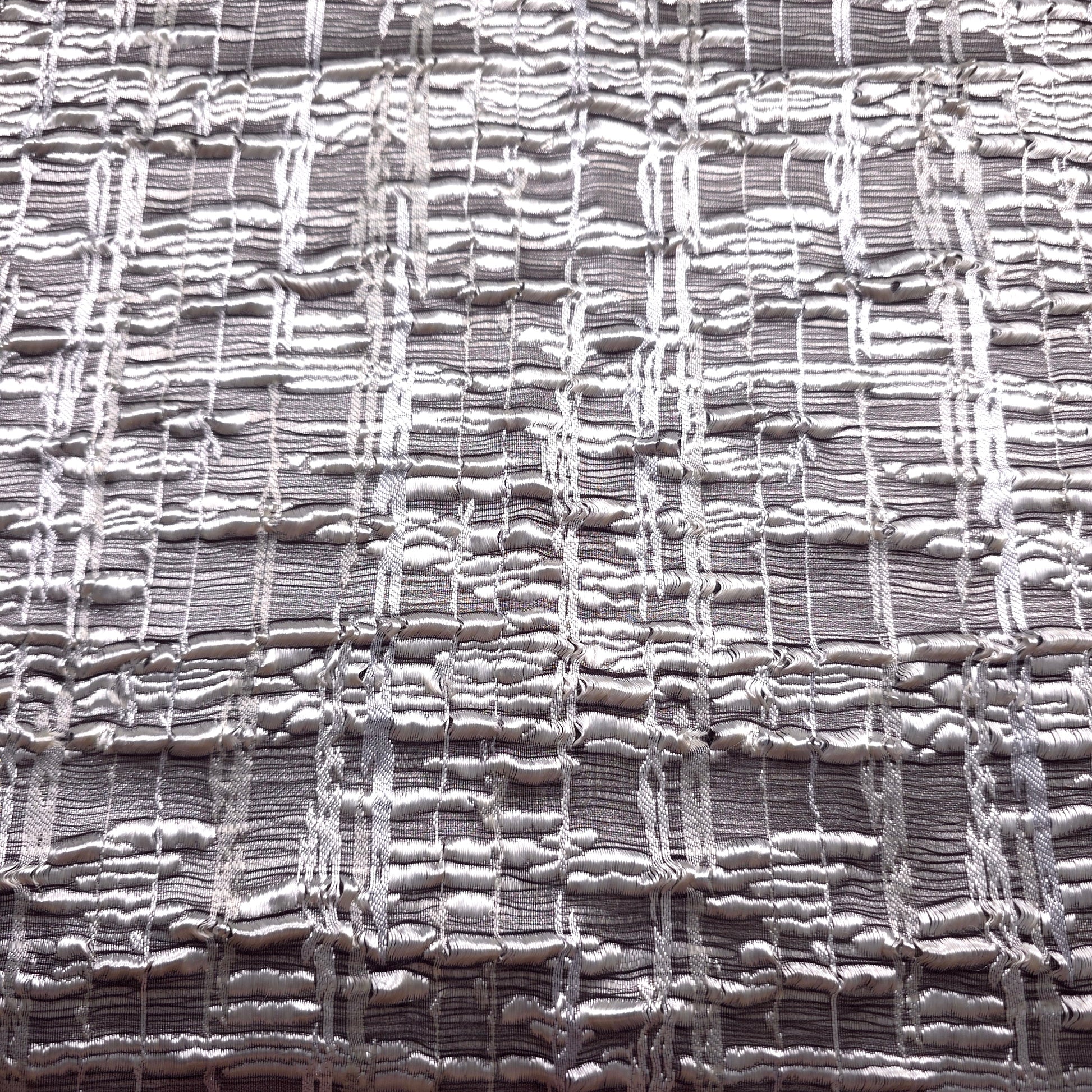 Elevate your interior with our spectacular extra-wide drapery fabric. This material features a sophisticated, three-dimensional texture composed of embossed lines in a shimmering cool-toned palette of silver and taupe. Specifically designed for high-impact applications, its 118-inch width allows for the creation of stunning, seamless drapes that exude contemporary elegance. The medium-weight polyester construction ensures the fabric drapes beautifully, making it a premier choice for designers and homeowners alike.