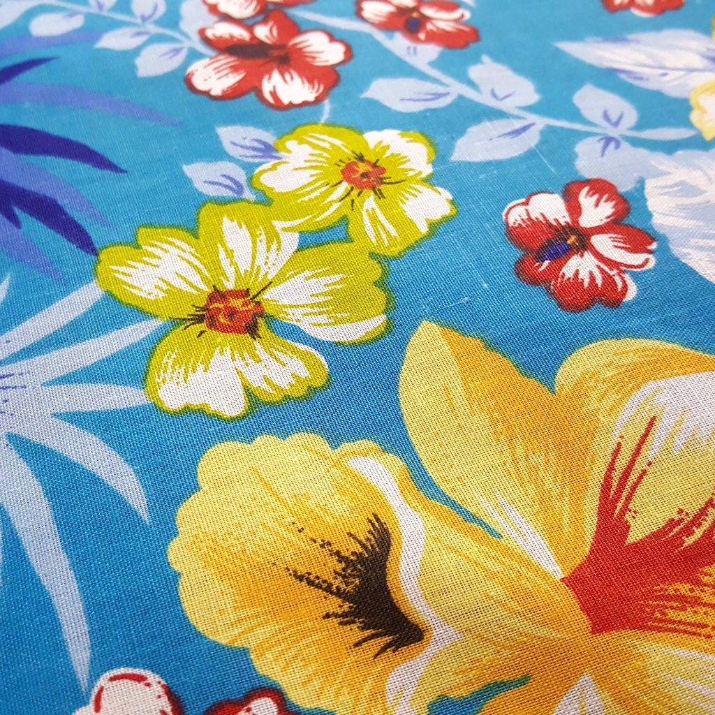 HAWAIIAN FLORAL MOTIF TURQUOISE YELLOW