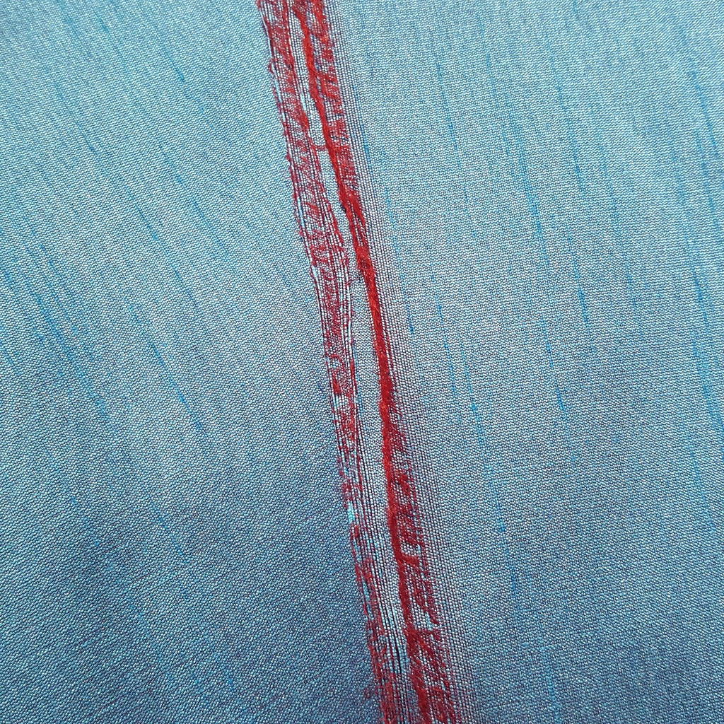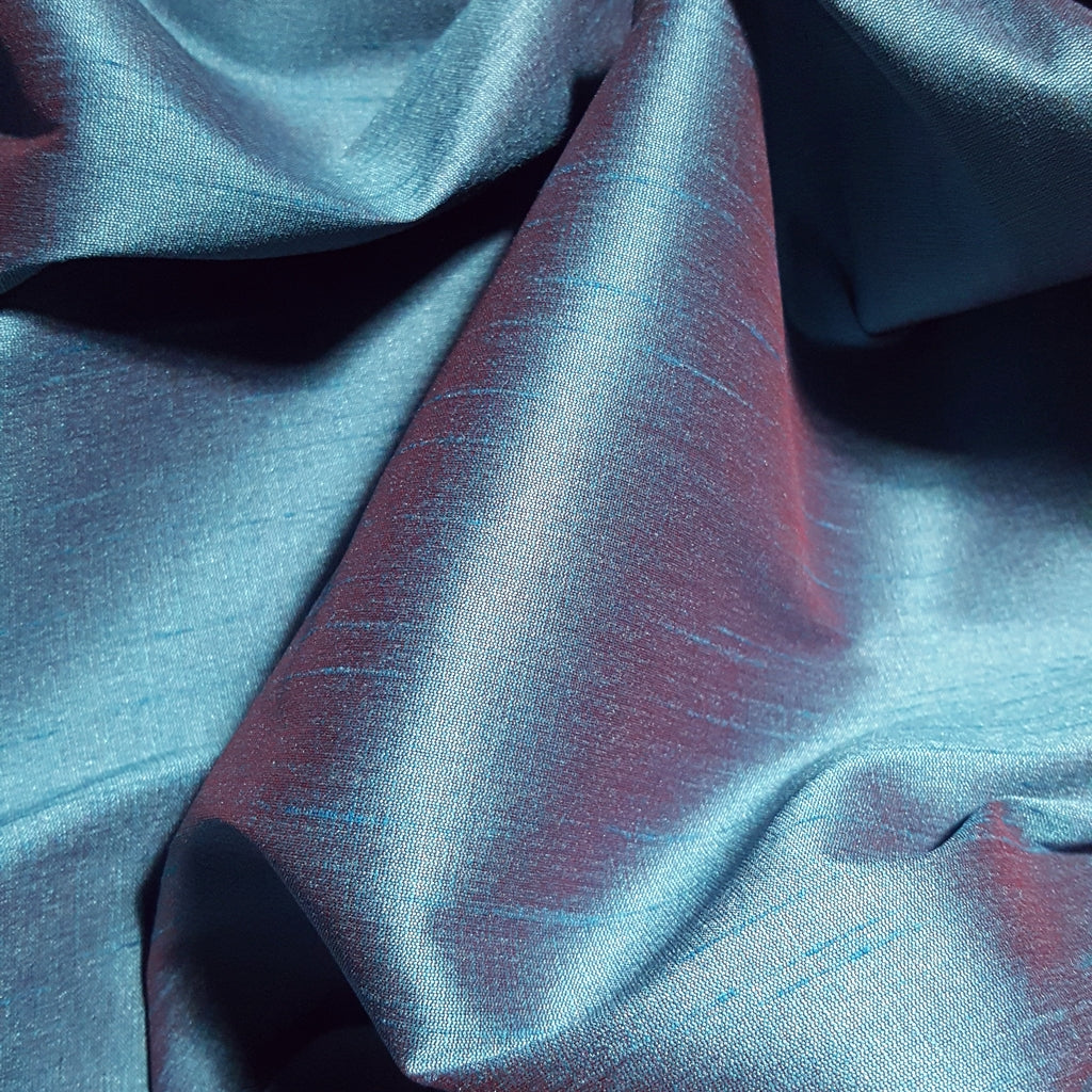 BLUE TURQUOISE RED FAUX SILK DUPIONI