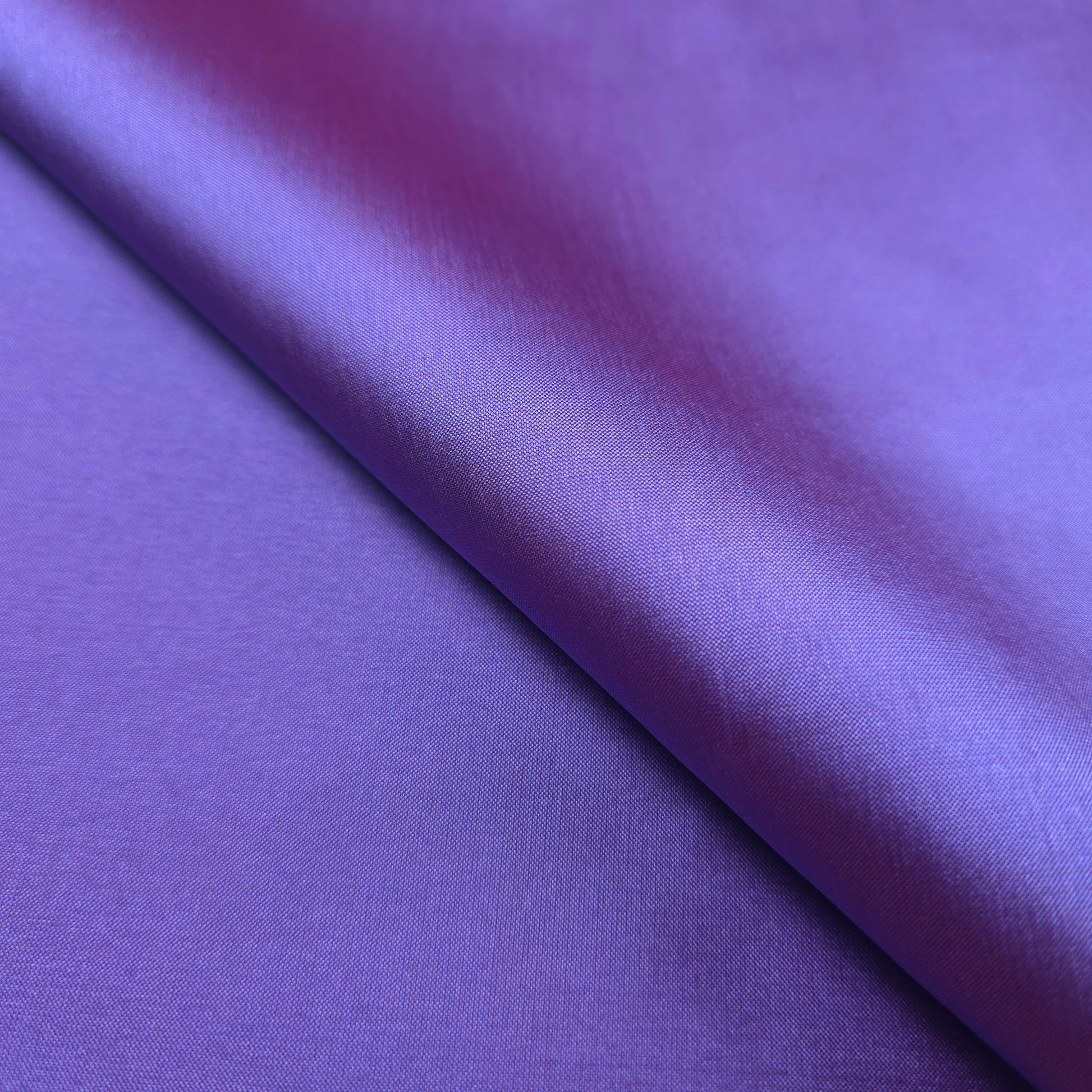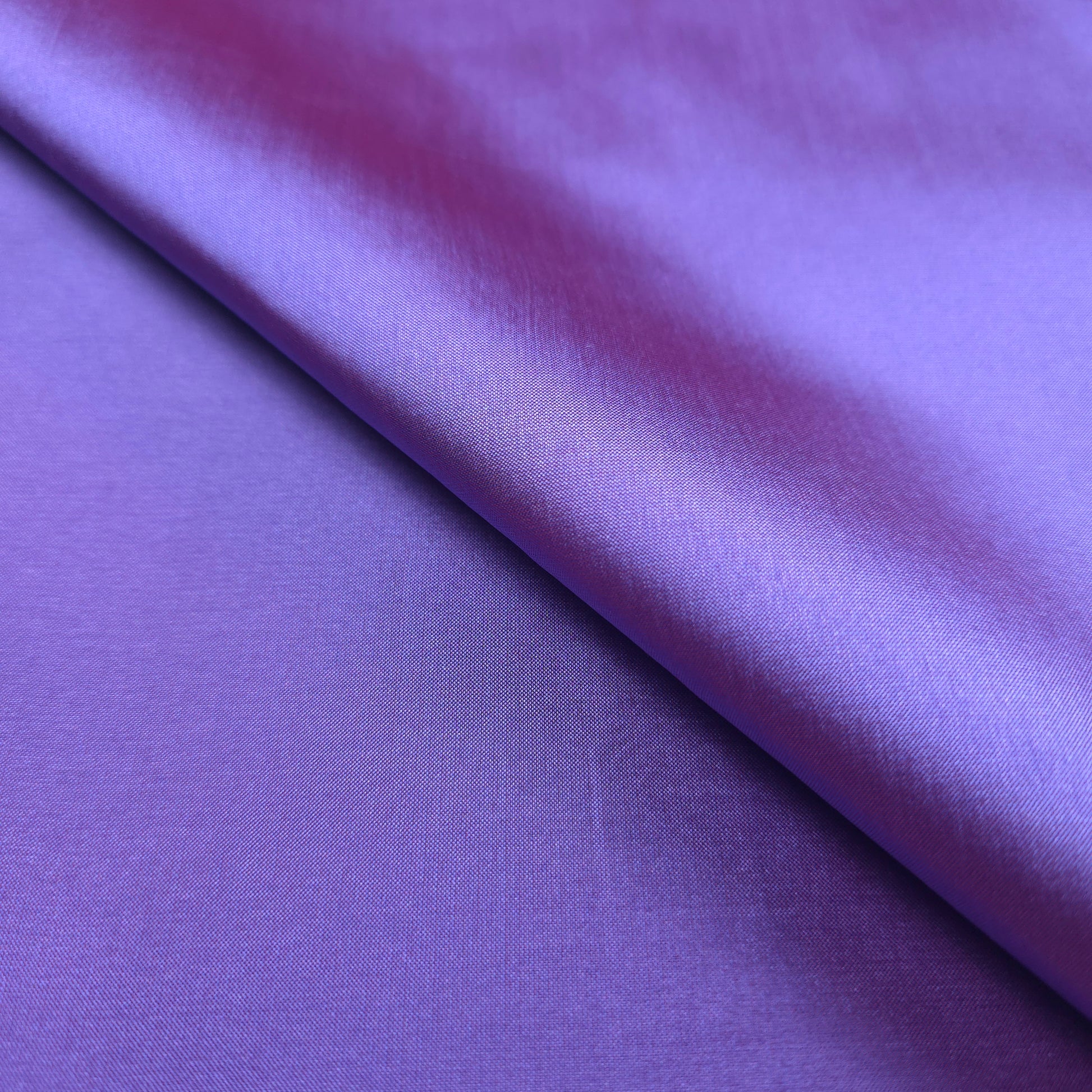 Discover our Iridescent Taffeta, a fabric that truly makes a statement. This stunning material is woven with a unique blend of cornflower blue and red threads, creating a dynamic, color-shifting surface that reads as a brilliant purple. Designed to capture the crispness and lightweight feel of luxury silk, this polyester taffeta is perfect for creating garments and decor with structure, volume, and a dramatic flair.