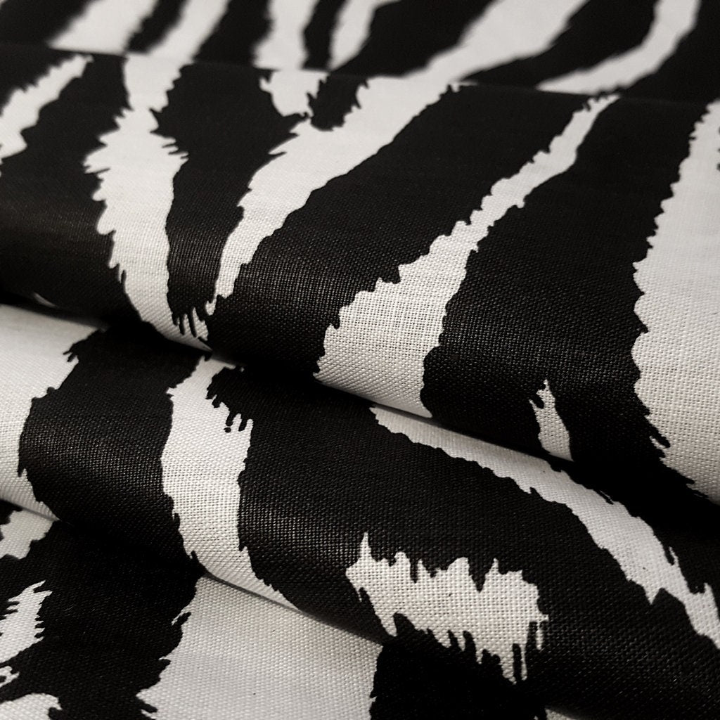 This versatile fabric features a bold black and white zebra print on a smooth, wrinkle-resistant 50/50 poly-cotton blend. Perfect for everything from statement apparel to fun quilting and craft projects, this fabric is easy to care for and soft to the touch, making it a favorite for all kinds of creative endeavors.